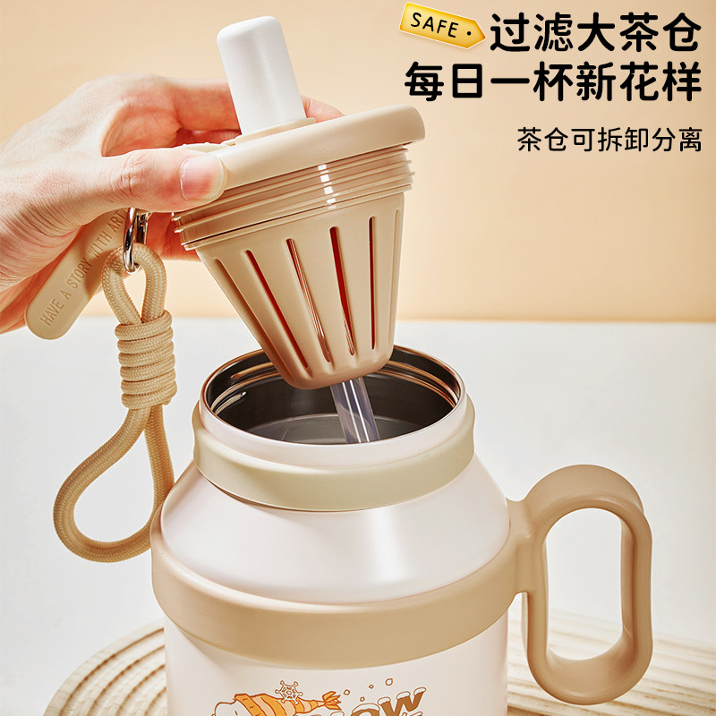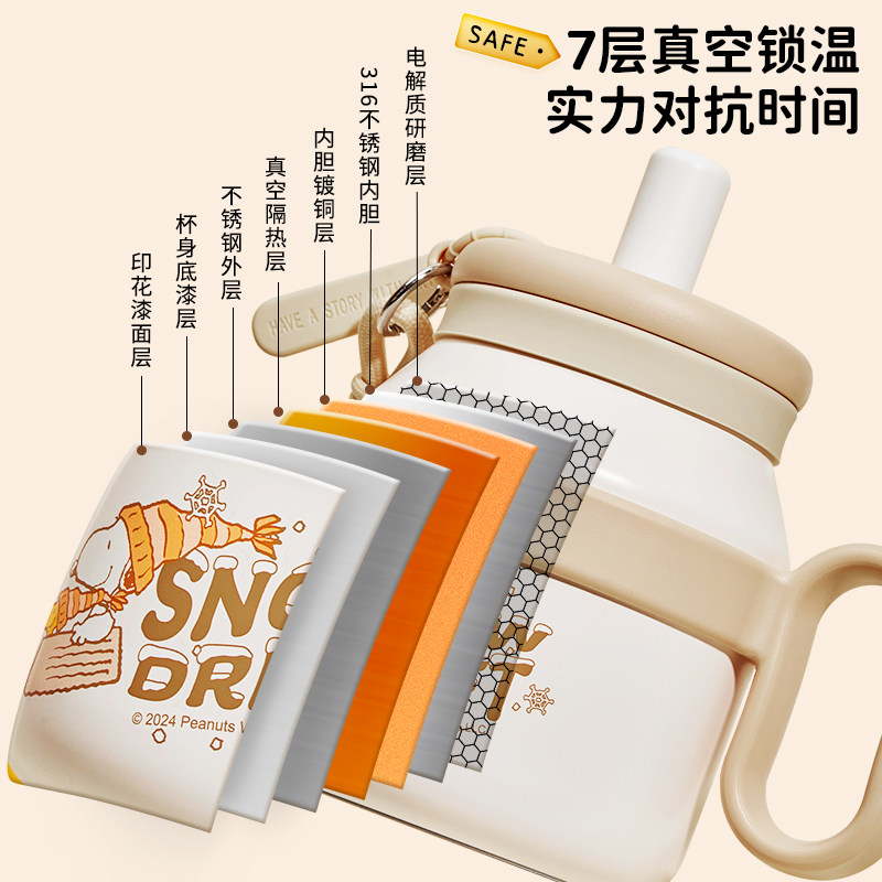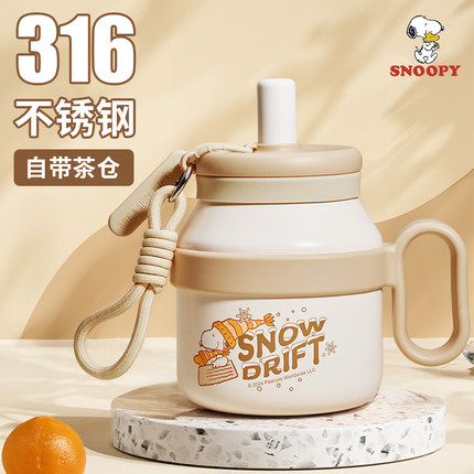 史努比保温杯女生高颜值316不锈钢吸管水杯大容量大肚杯学生水壶