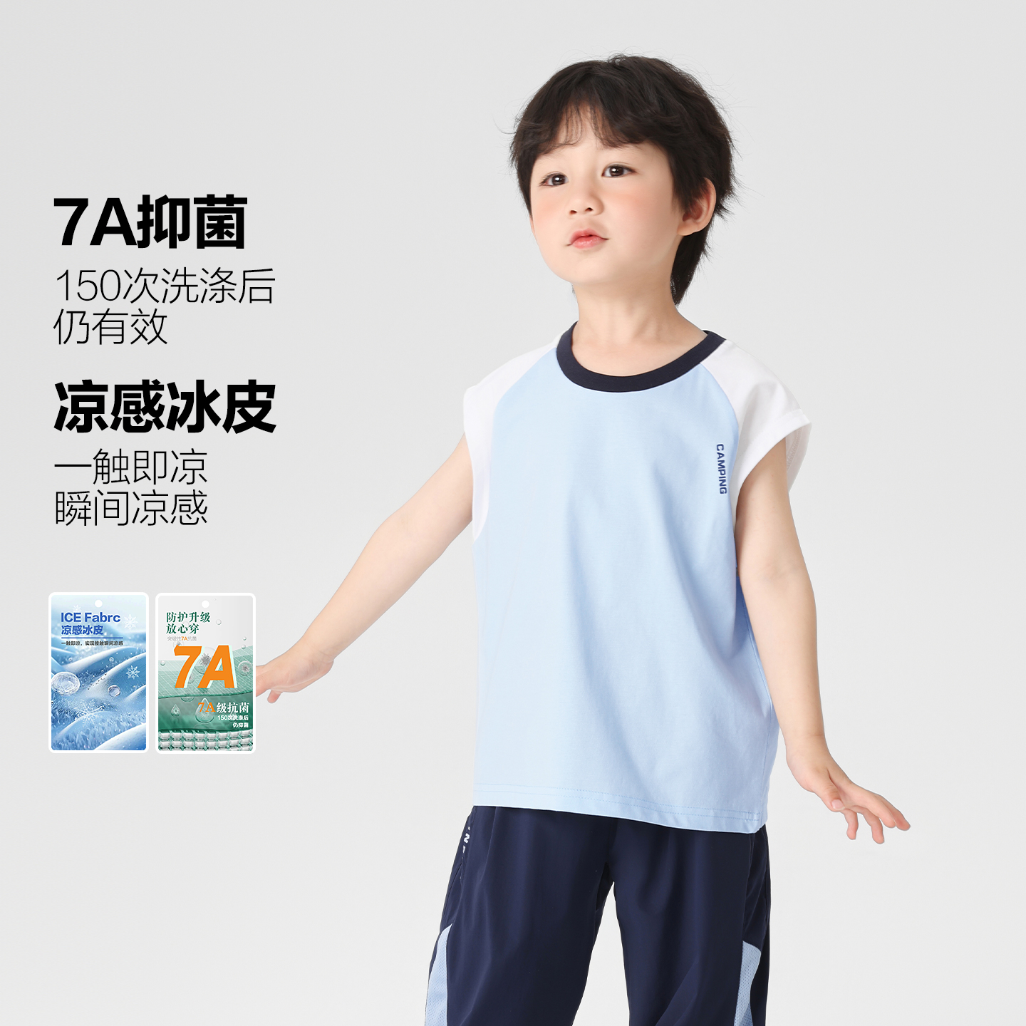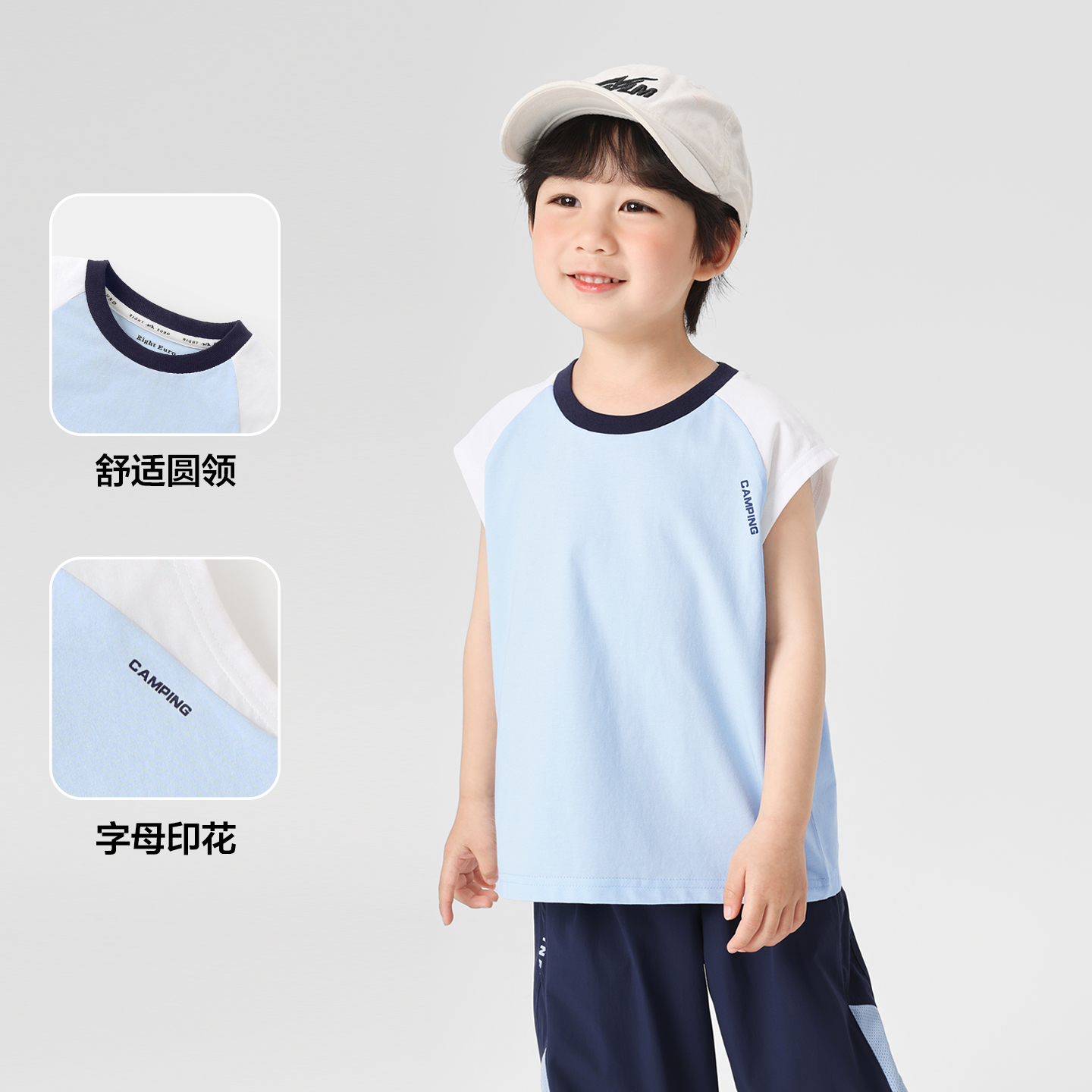右欧男童背心撞色女童儿童无袖T恤洋气夏季新款童装薄款上衣夏装