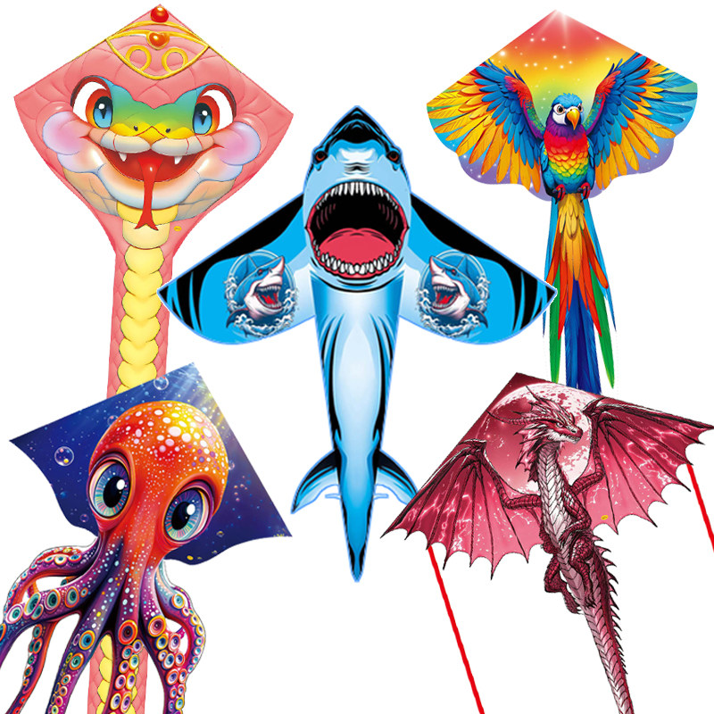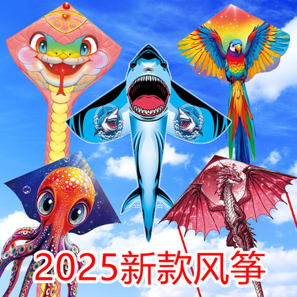 2025新款潍坊卡通鲨鱼大小风筝儿童微风易飞手持线轮盘成人专用