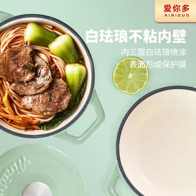 爱你多迷你13cm16cm珐琅锅铸铁锅一人食家用炖锅盅平底不粘锅砂锅