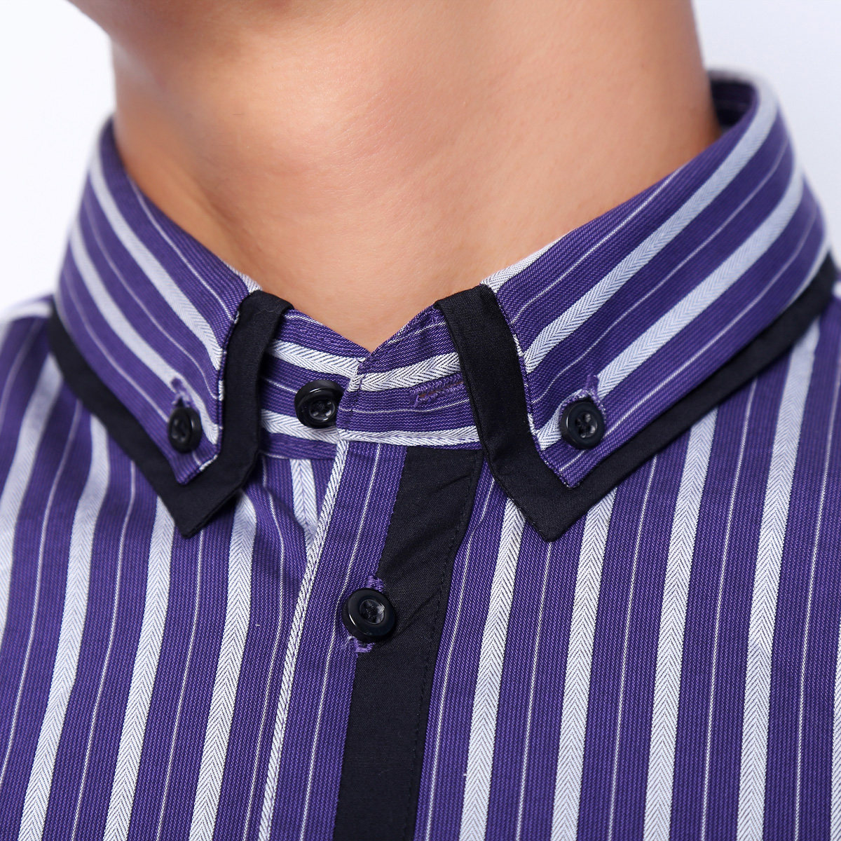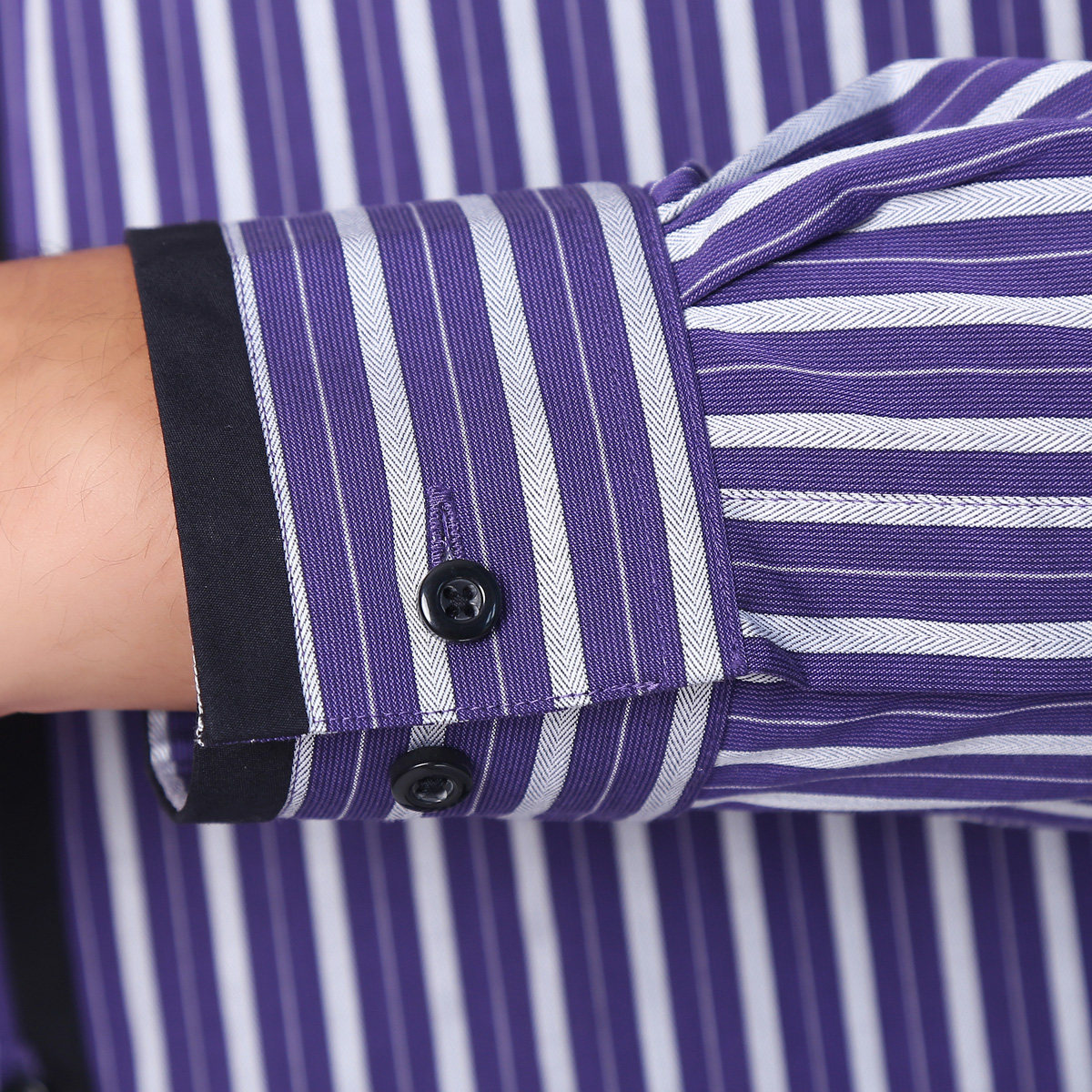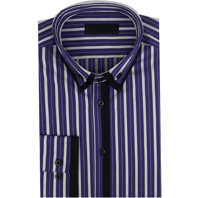 双层领条纹衬衫男长袖宽松男士商务休闲纯棉免烫长袖衬衫男丝光棉