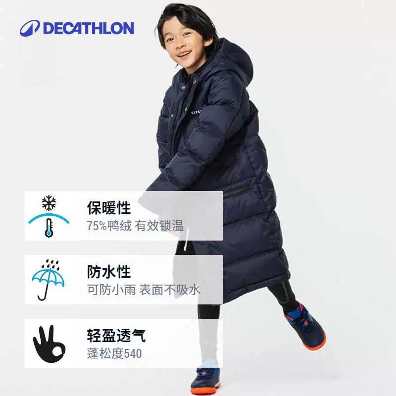迪卡侬亲子父子长款羽绒服秋冬保暖鸭绒新款连帽加厚外套KIDO