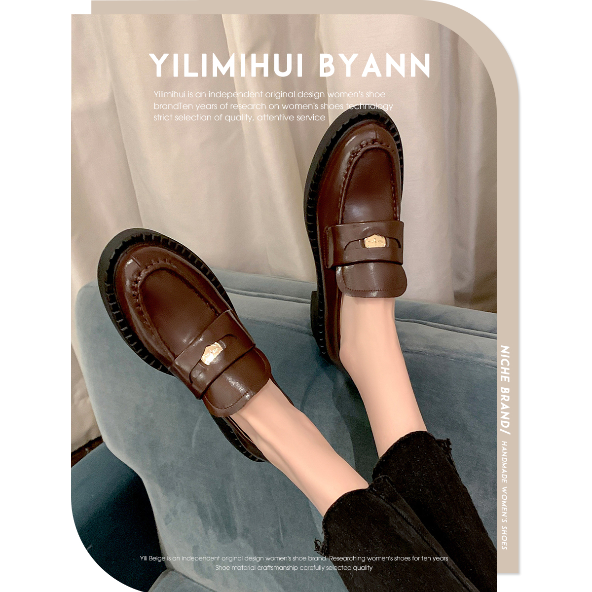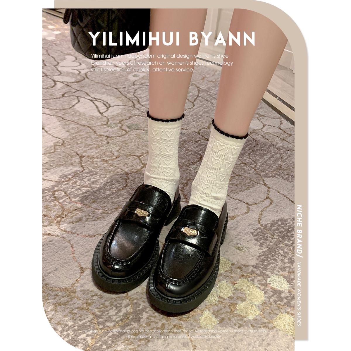 一力米灰 学院甜妹~!复古英伦风厚底真皮乐福鞋百搭增高小皮鞋女