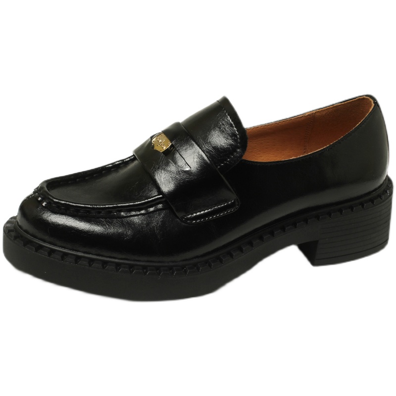 一力米灰粗跟乐福鞋学院