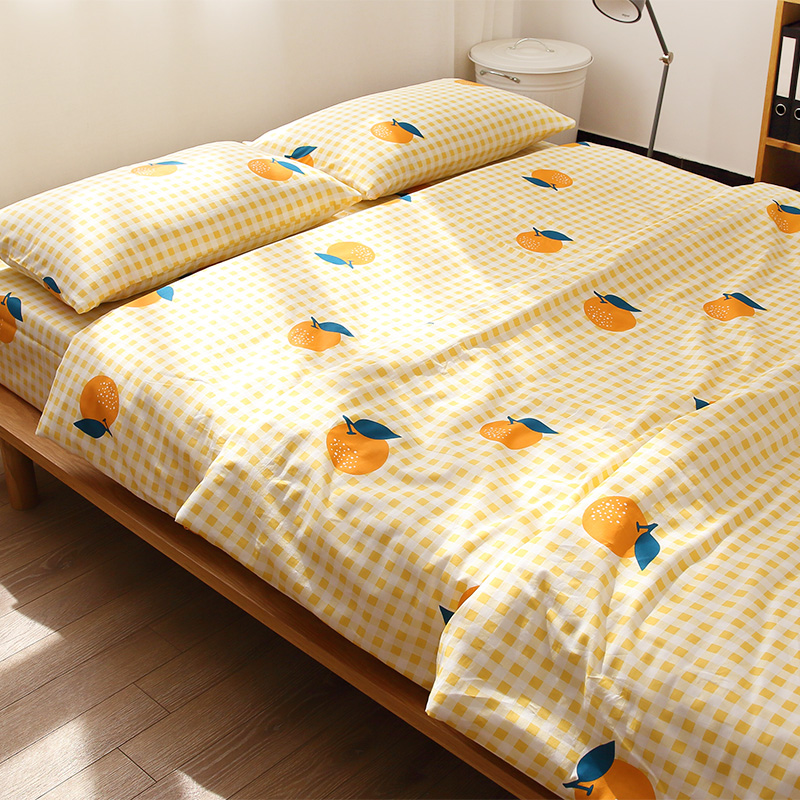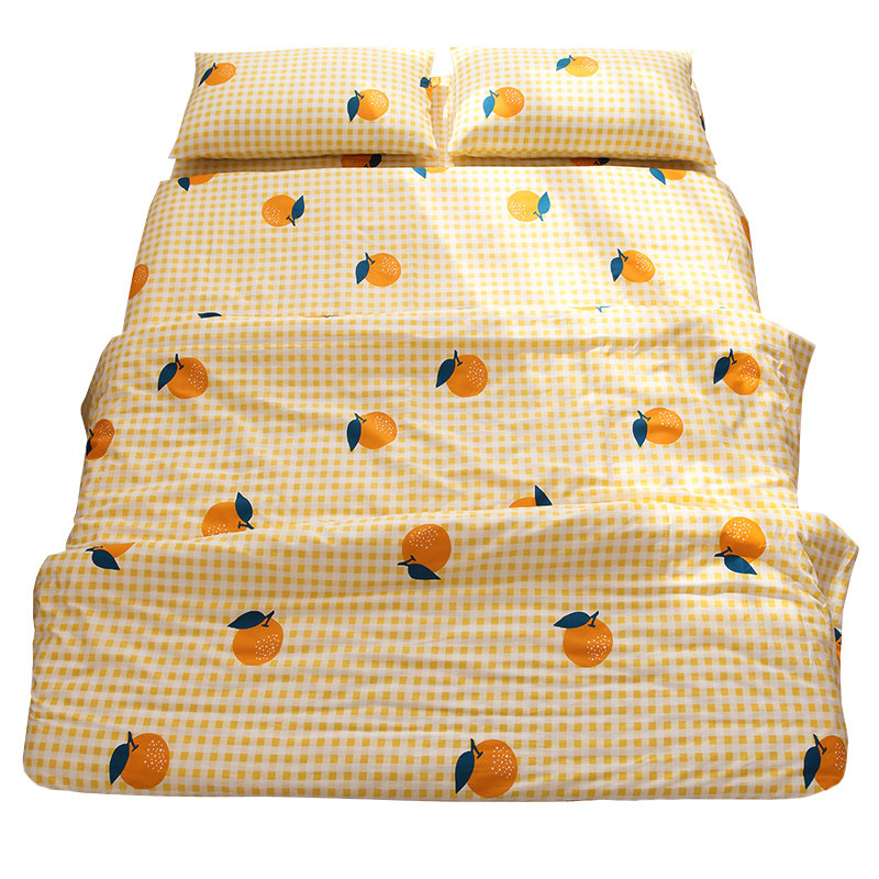 AFISHTANG橘子汽水文艺水果色全棉床单被套枕套纯棉被罩床笠定做
