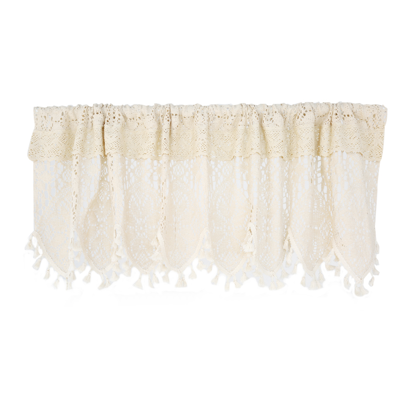 美式乡村窗帘半帘幔头钩针流苏免打孔门帘穿杆粘贴透光咖啡帘