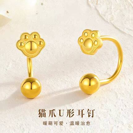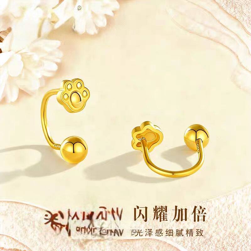18k金猫爪耳钉女小众设计感高级轻奢气质百搭耳环新款爆款耳饰