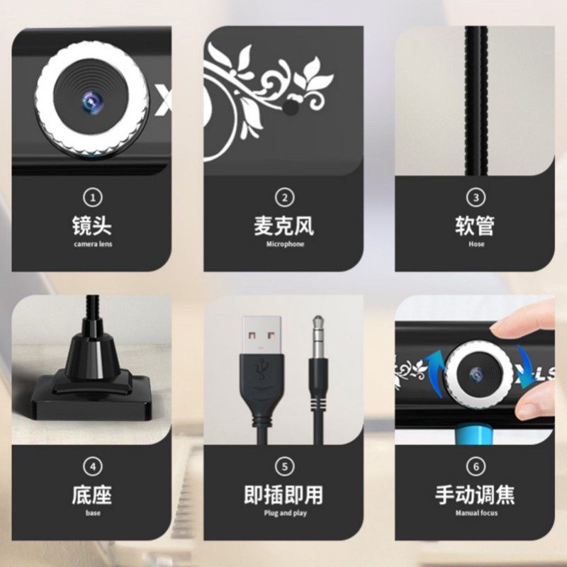 炫光 电脑摄像头高清直播网课立式会议钉钉台式机笔记本usb带话筒