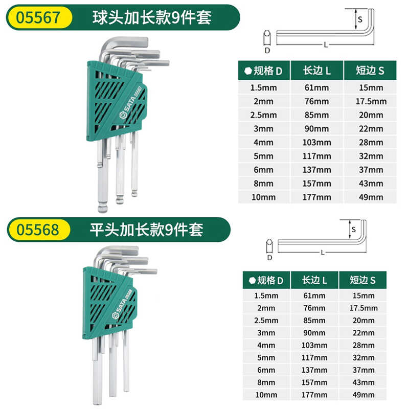 世达内六角扳手套装 六棱加长内六方扳手6角螺丝刀六角匙维修工具