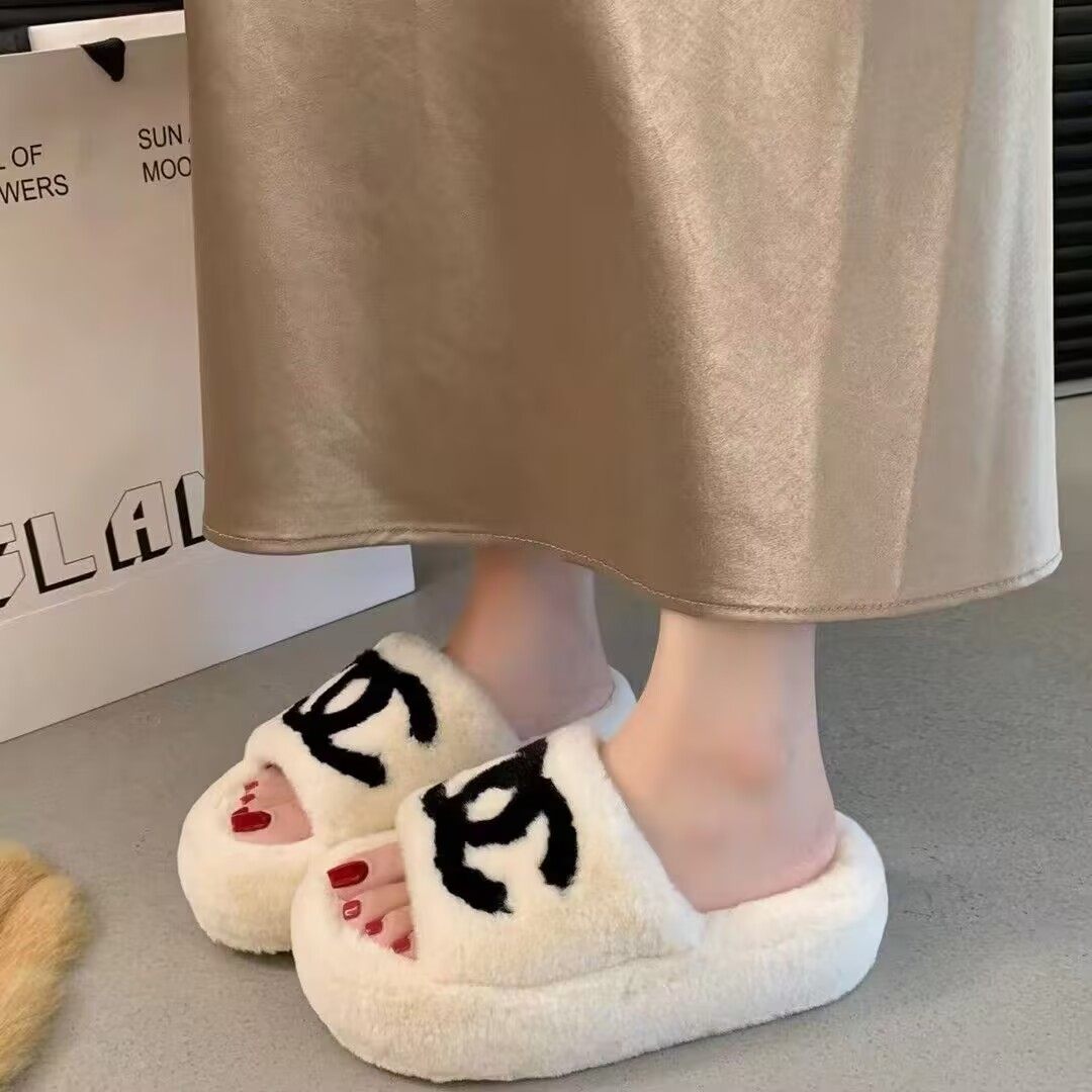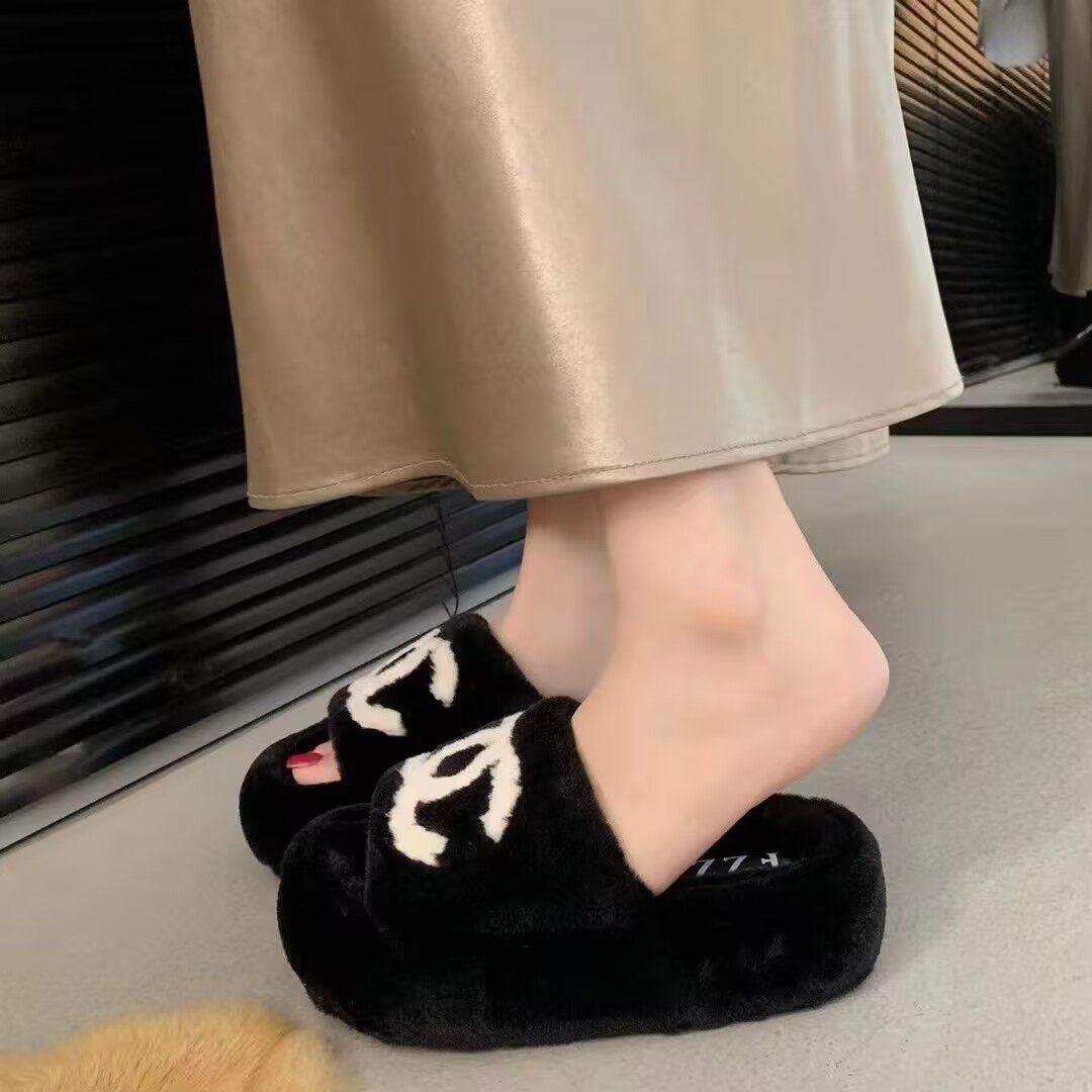 2025冬新款时尚百搭毛毛女露趾半拖鞋外穿懒人一脚蹬厚底休闲潮拖