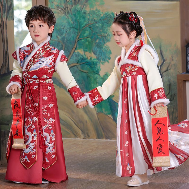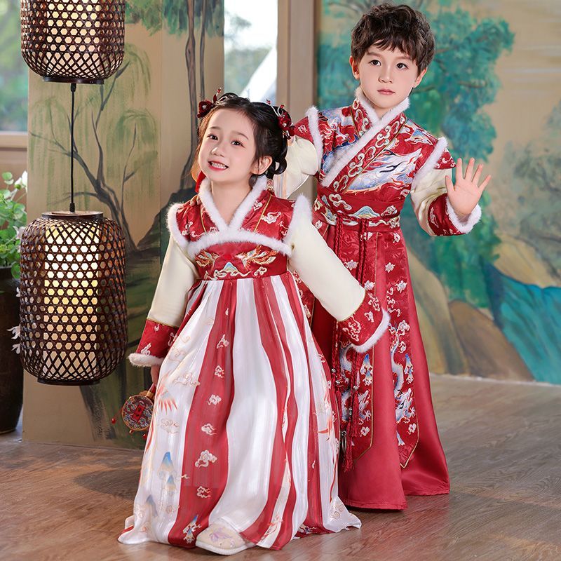 男女童冬季汉服2025新款加绒加厚古风儿童过年古装国风拜年唐装
