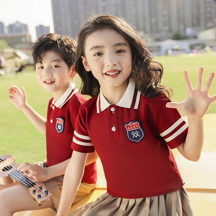 夏季幼儿园服新款红色英伦风小学生班服儿童毕业照套装合唱演出服