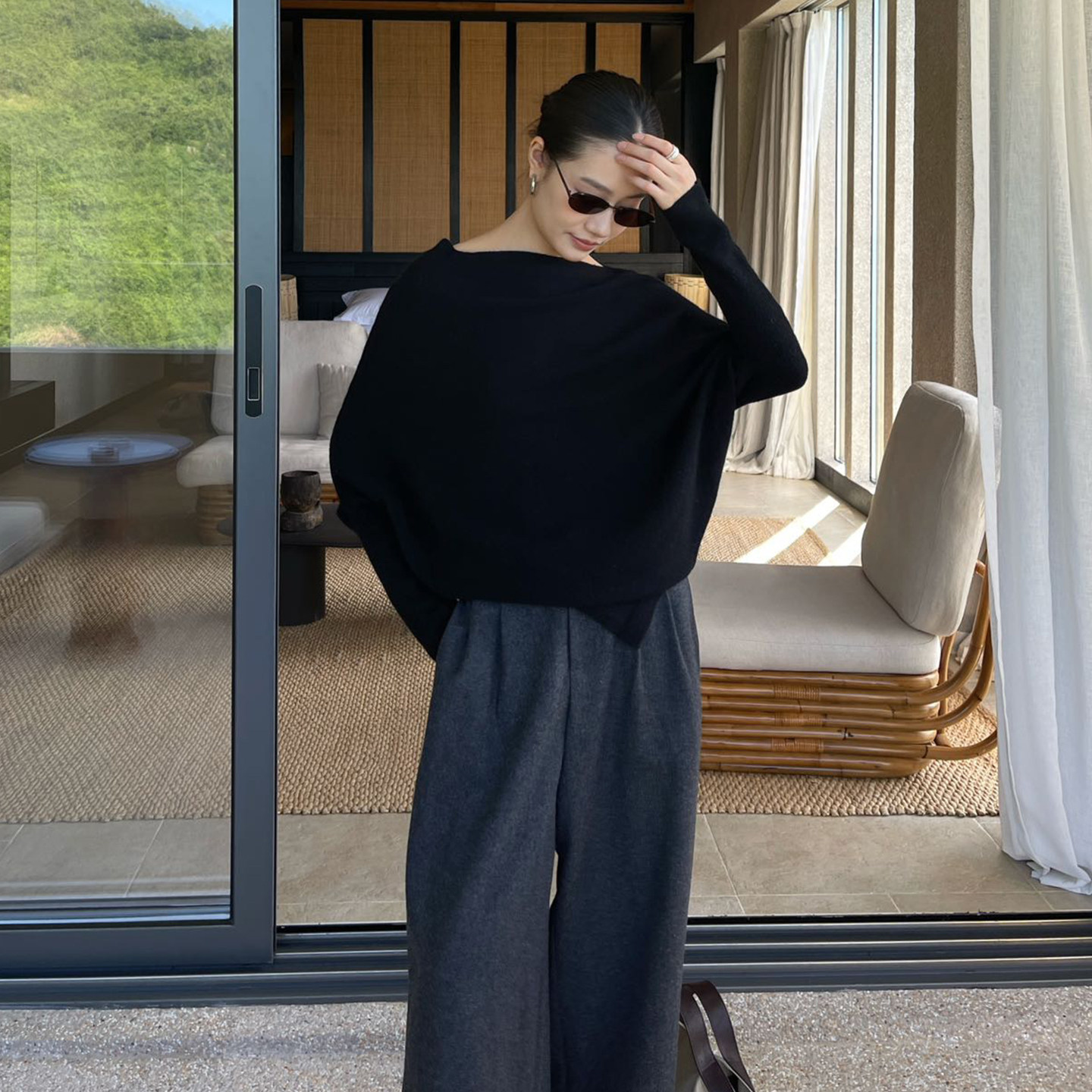 不规则蝙蝠袖宽松套头羊毛毛衣女冬季慵懒高级韩系穿搭针织衫上衣
