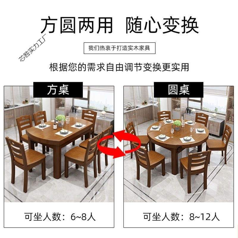 全实木餐桌椅组合餐桌家用伸缩折叠现代简约吃饭桌户型可变圆桌
