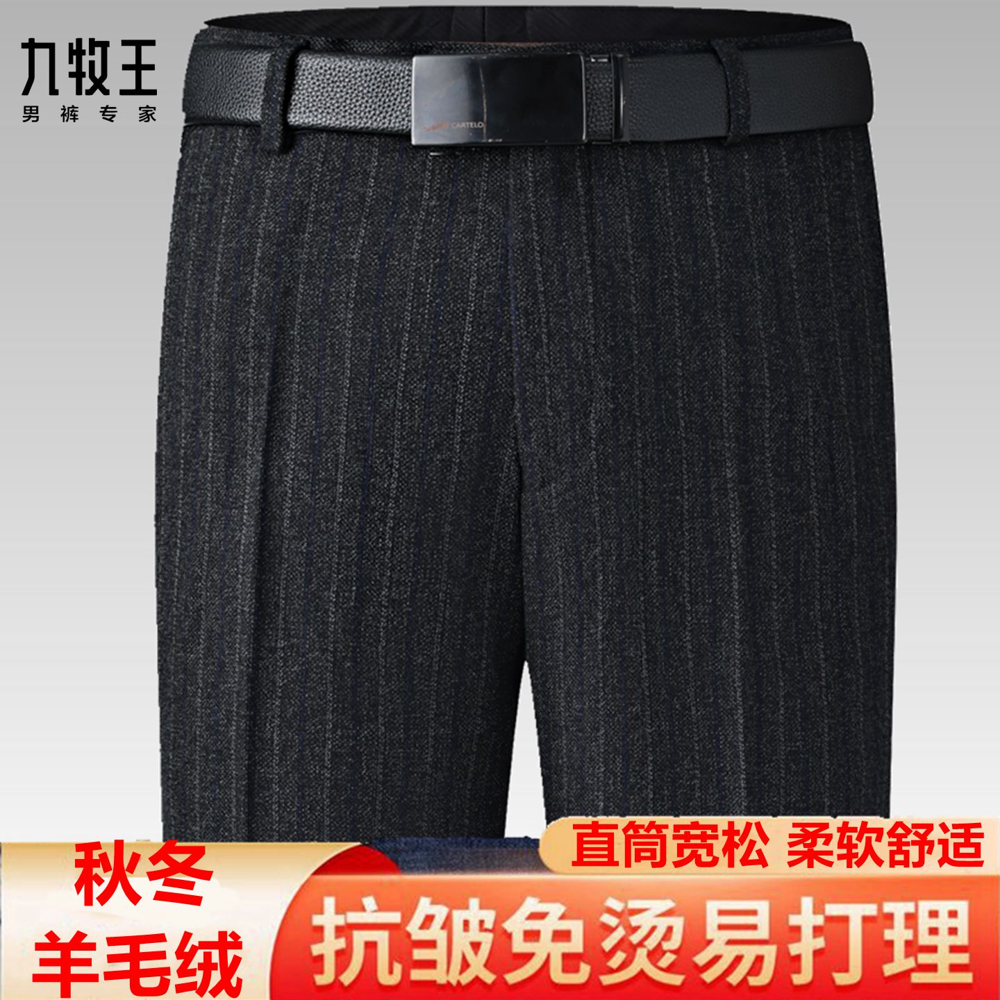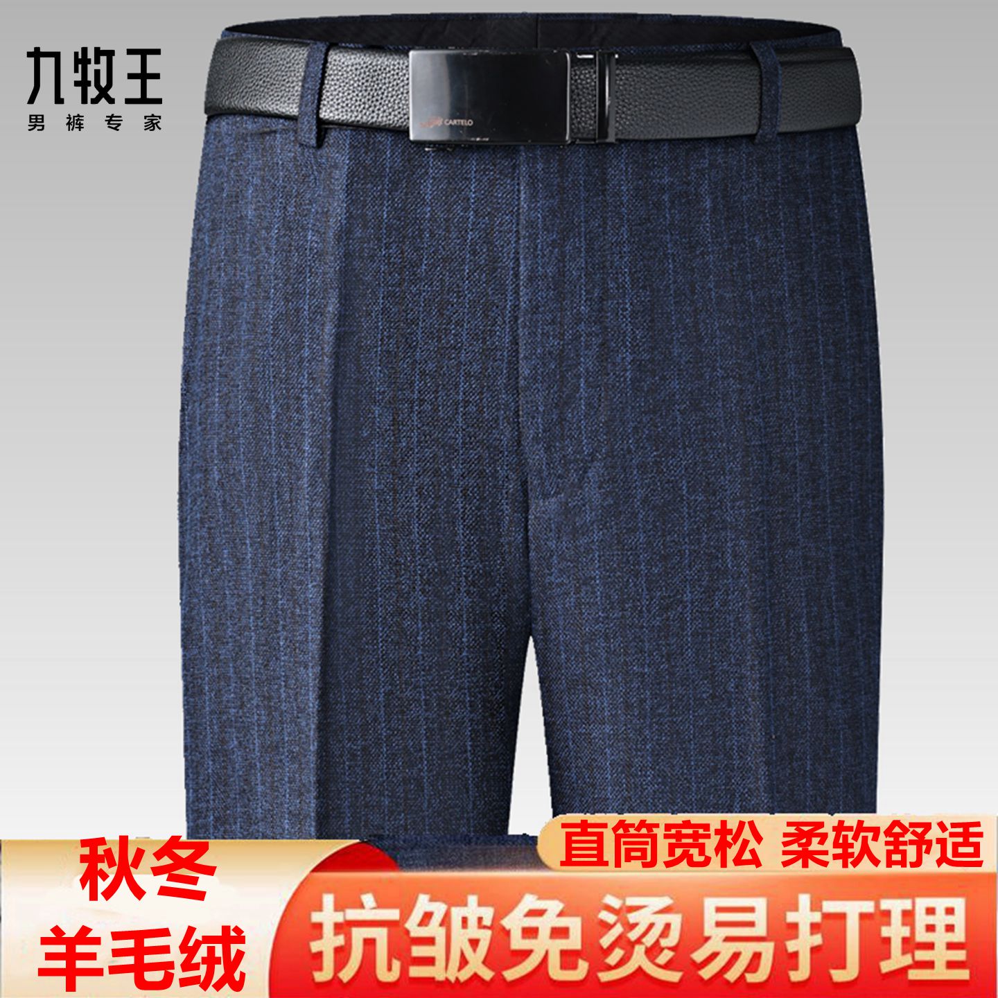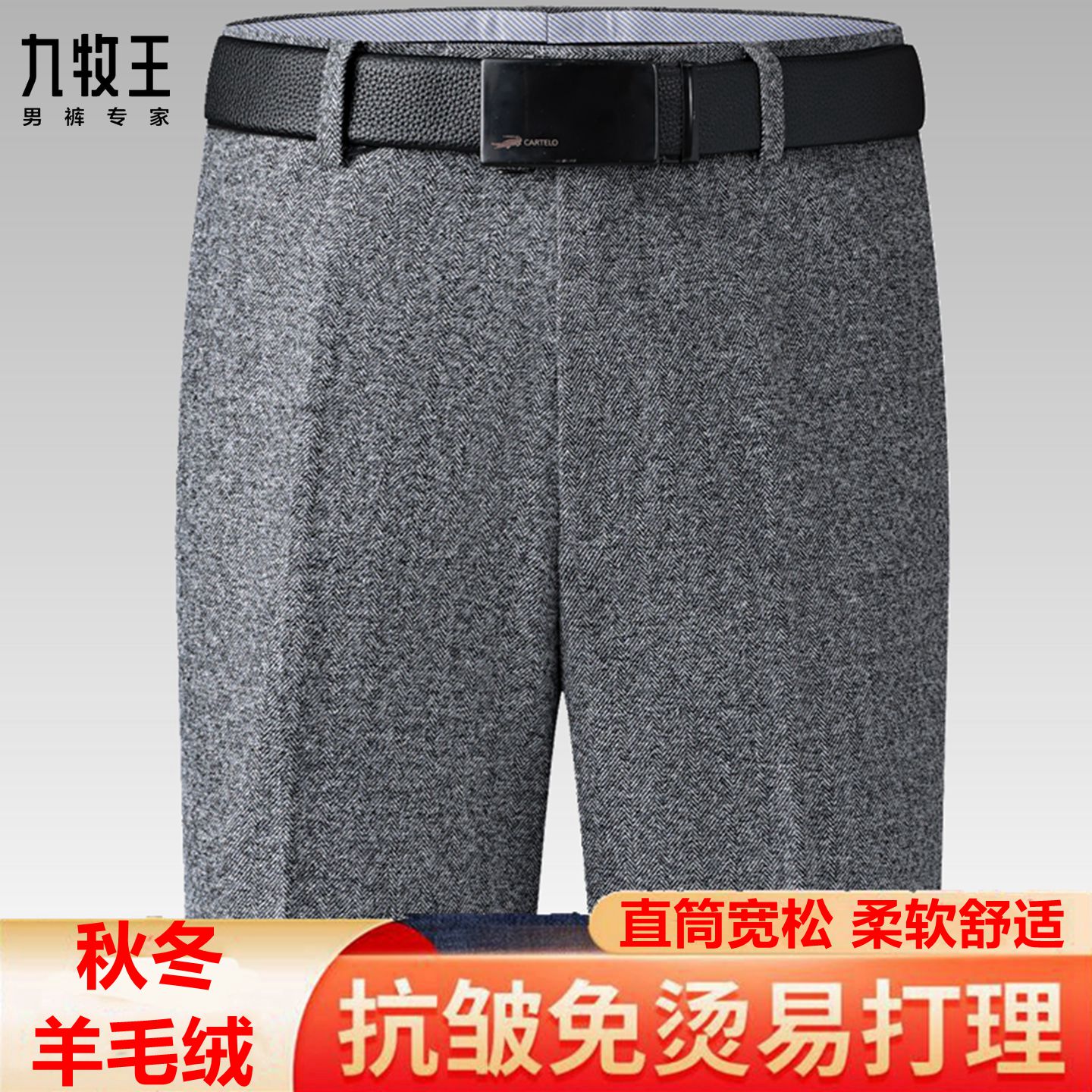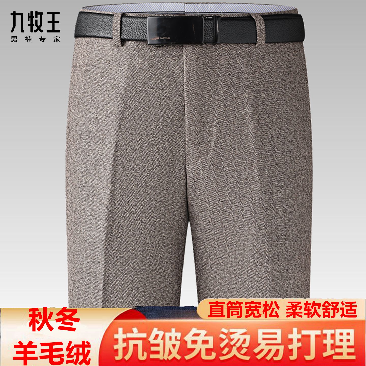 九牧王秋冬厚款羊毛绒西裤男中老年宽松直筒高腰深裆免烫休闲长裤