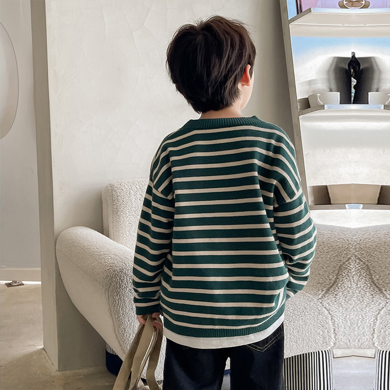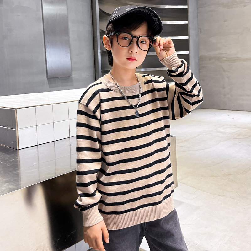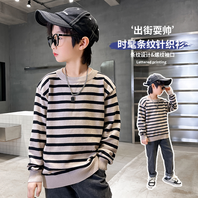 男童条纹毛衣儿童针织衫2025春秋季新款潮牌宝宝打底薄款套头上衣