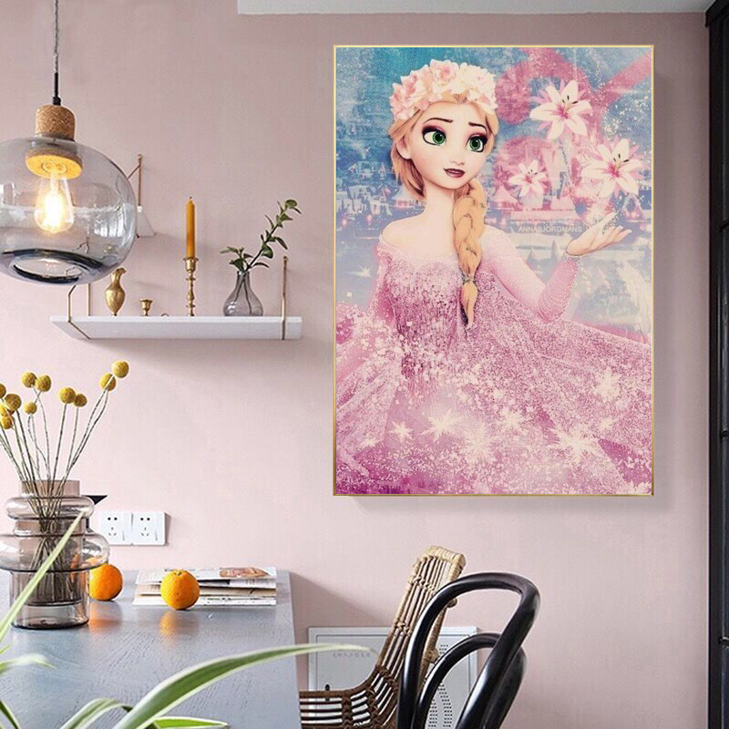 儿童卡通钻石画贴手工艾莎公主点贴钻粘贴满钻十字绣小幅客厅卧室