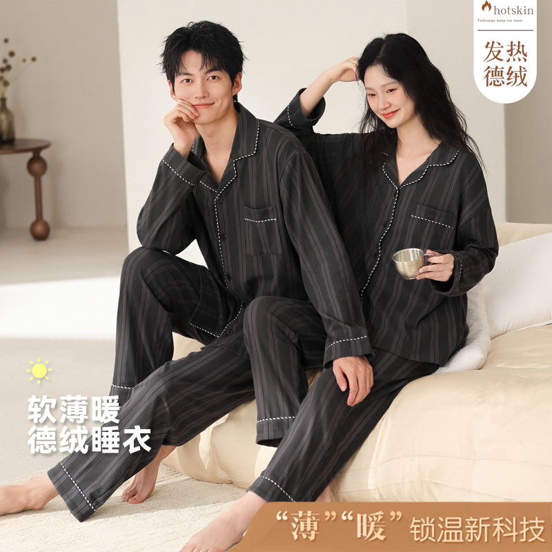 浪莎秋冬季情侣睡衣女士冬款德绒套装加绒保暖加厚男款男士家居服
