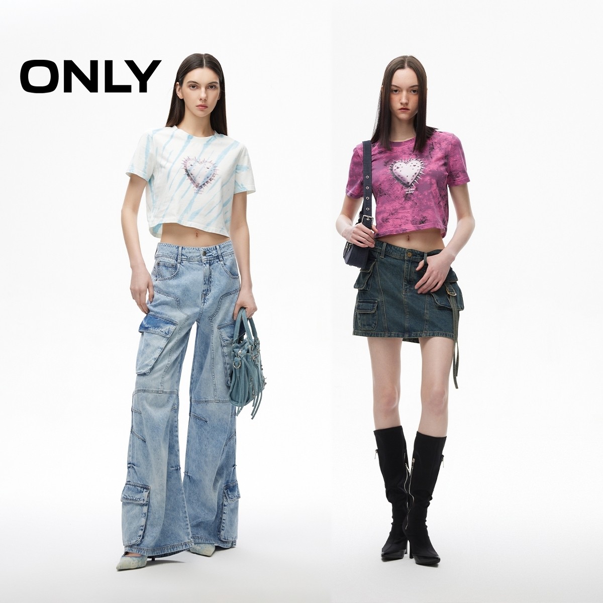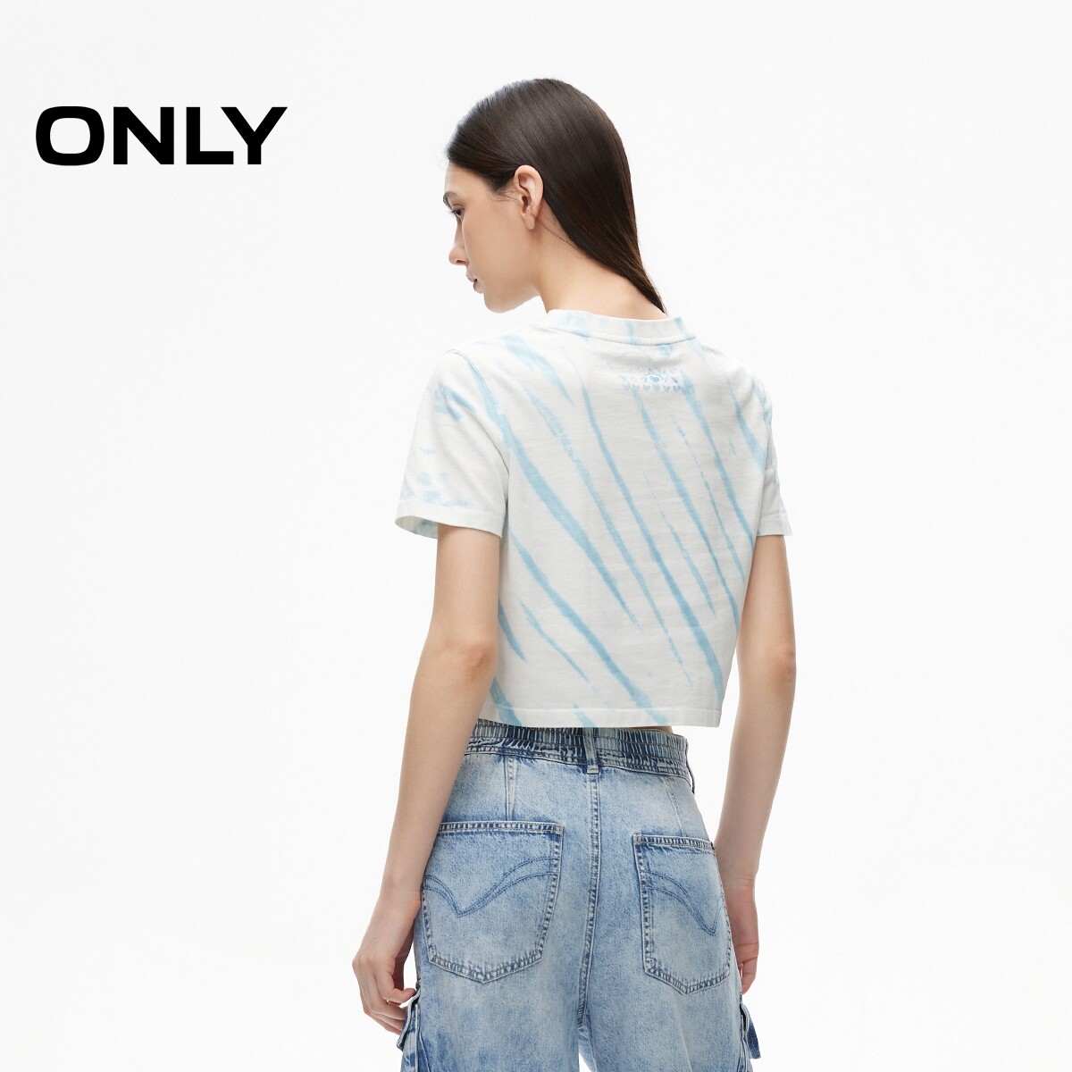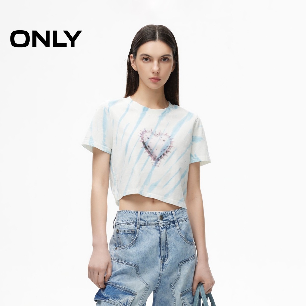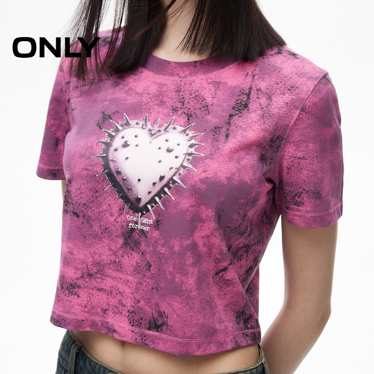 【ONLY奥莱】夏季潮酷印花螺纹圆领短款正肩纯棉T恤女