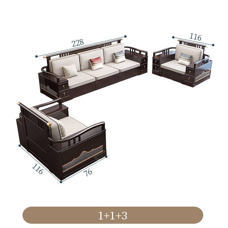中式实木沙发组合储物禅意大户型现代简约小户型客厅冬夏两用家具