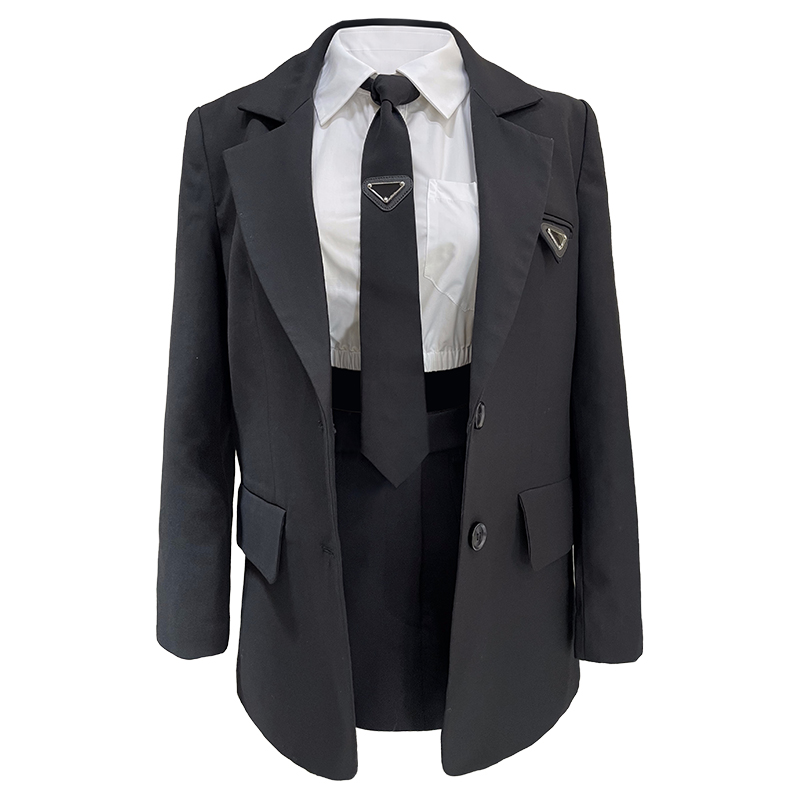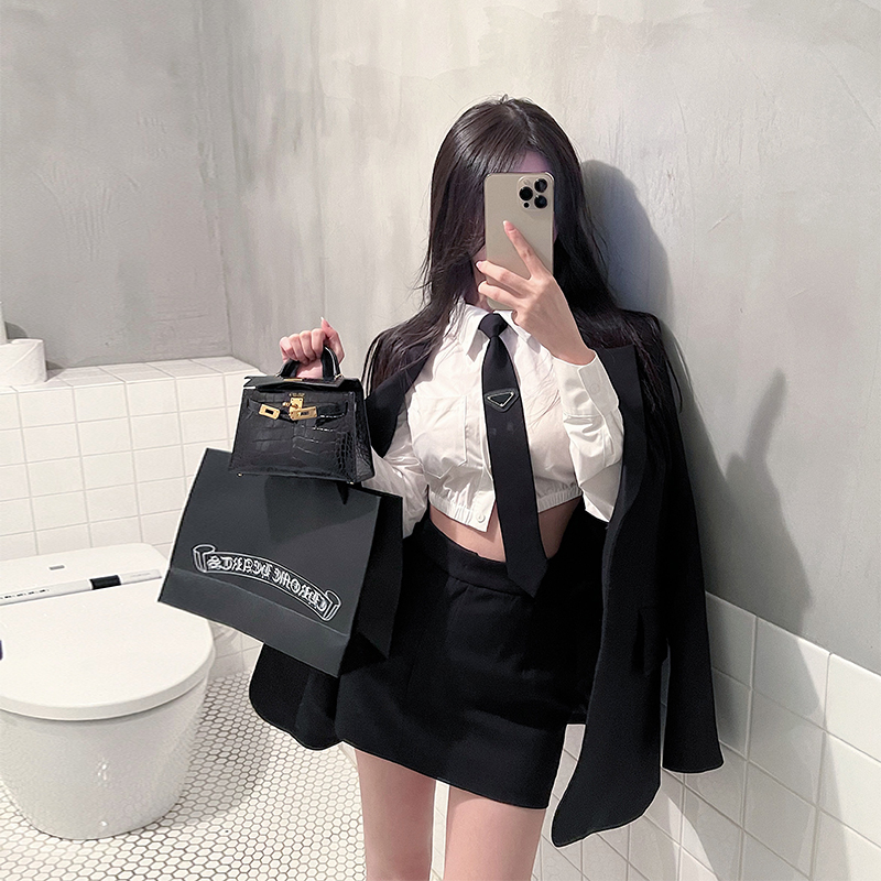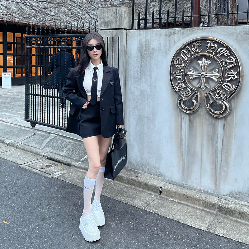 熊熊屋【街头女明星】留学生即视感廓形西装白衬衫高腰短裙套装