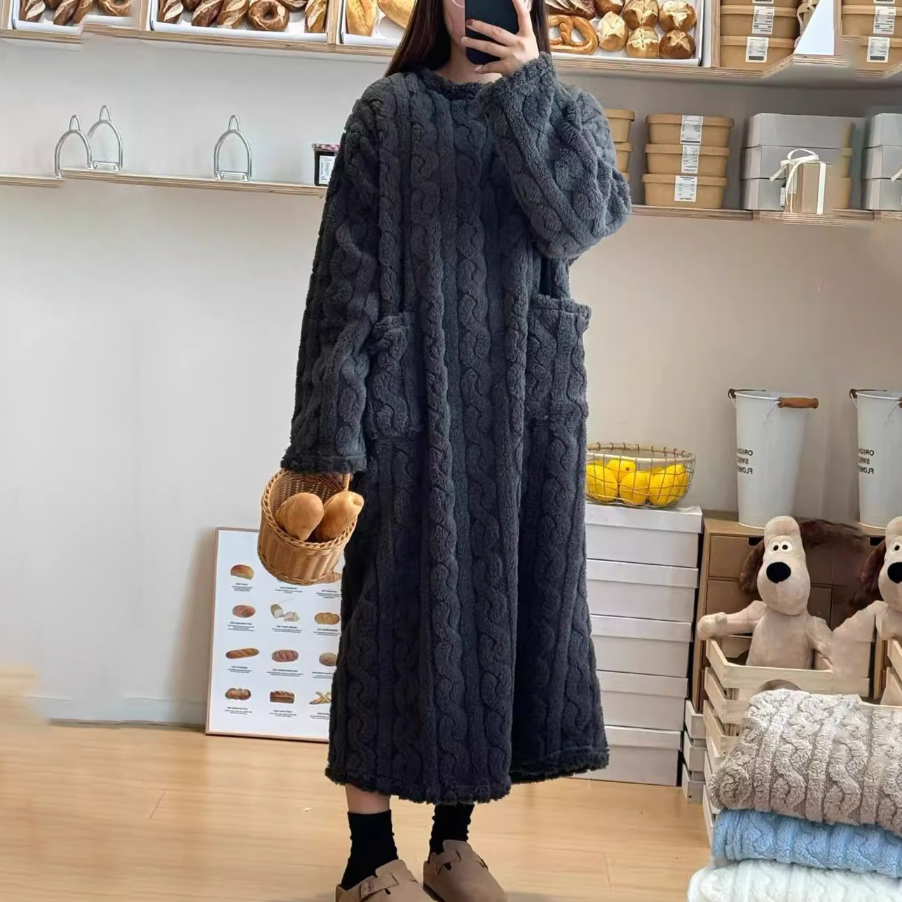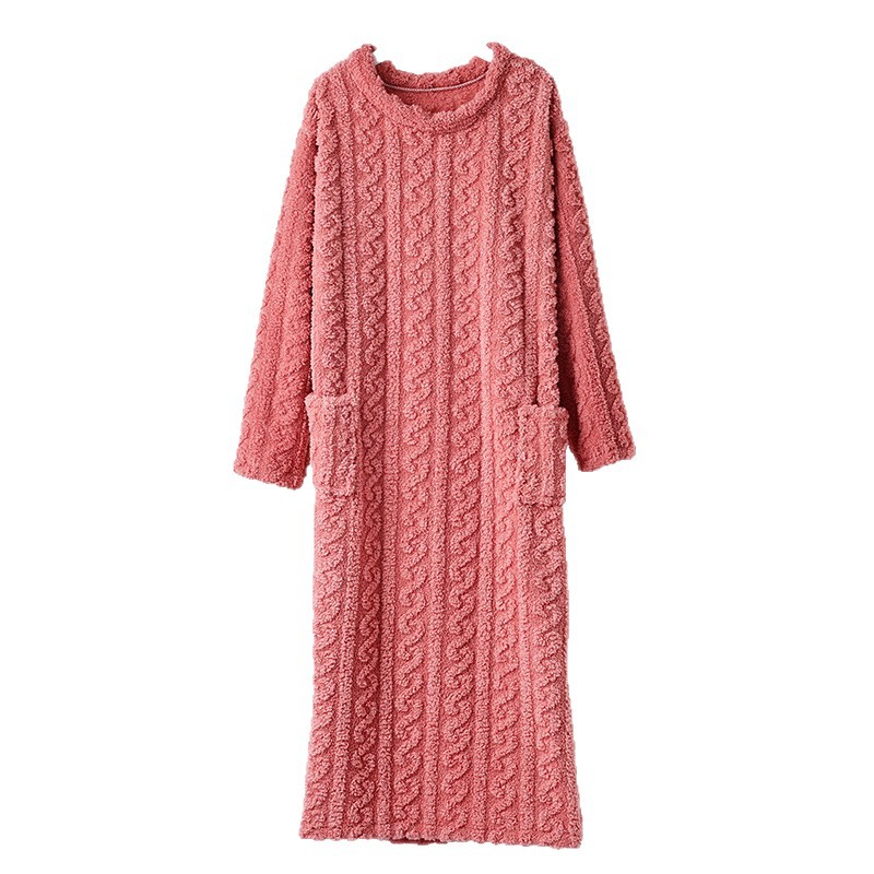 睡裙加厚家居服浴袍珊瑚绒绒睡袍保暖睡衣秋冬季女加长款长袖