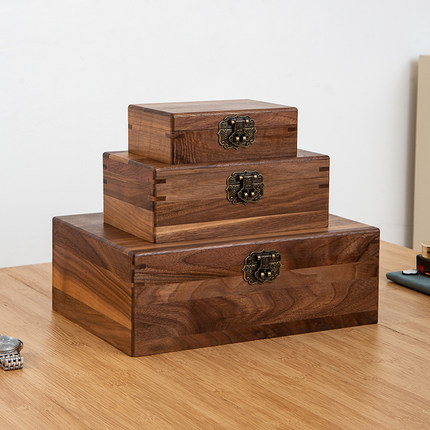 实木复古黑胡桃小木盒长方形首饰收纳盒收藏证件盒带锁木质木盒子
