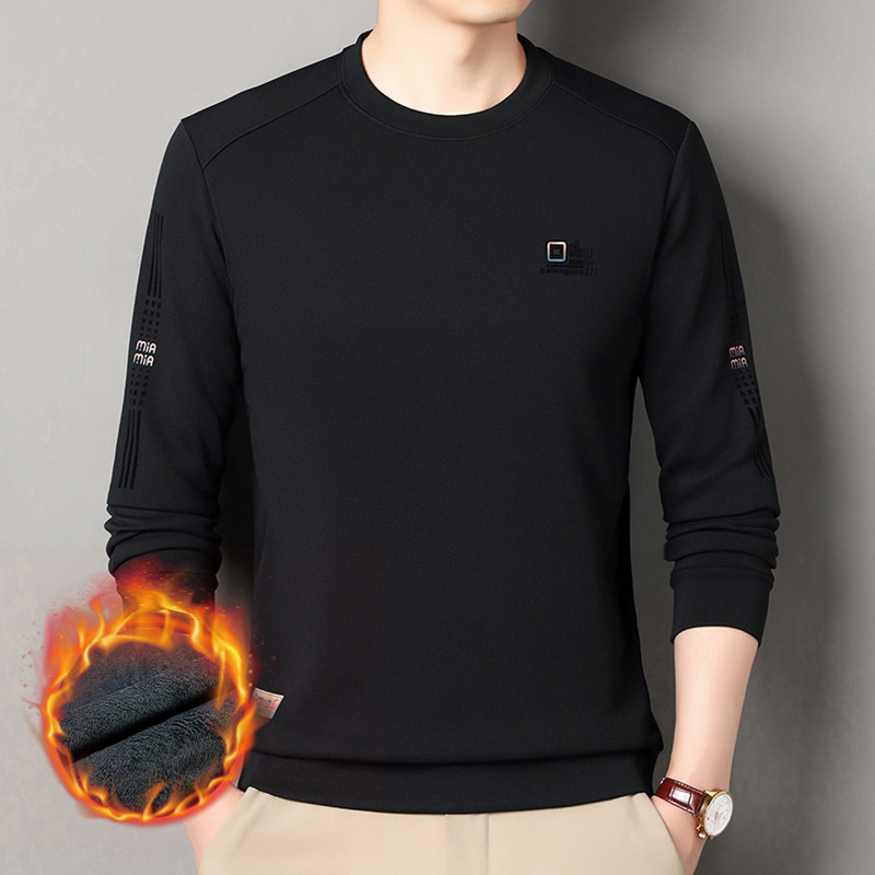 皮尔卡丹秋冬男抗皱免烫长袖t恤圆领卫衣宽松百搭加绒加厚打底衫