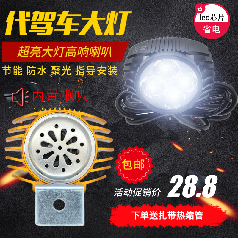 代驾车超亮大灯折叠电动车前灯内置高响喇叭车前二合一通用灯厂家