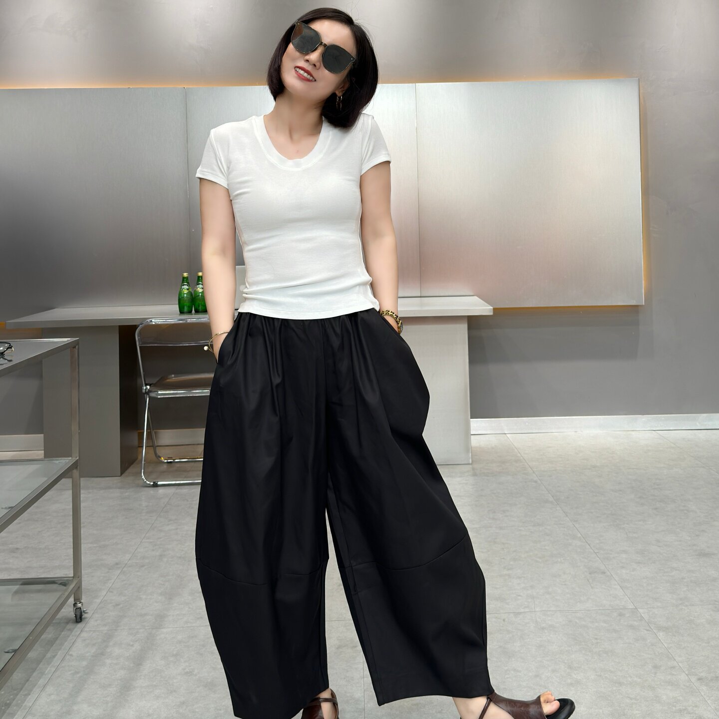 西文家~凉爽松弛高级感9分阔腿裤休闲高级感时装宽松灯笼裤文艺