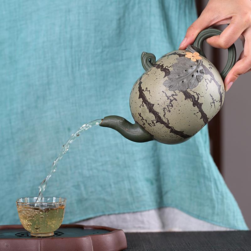 西瓜紫砂壶原矿紫泥月红手工茶壶茶具大号壶花器泥绘一件起批