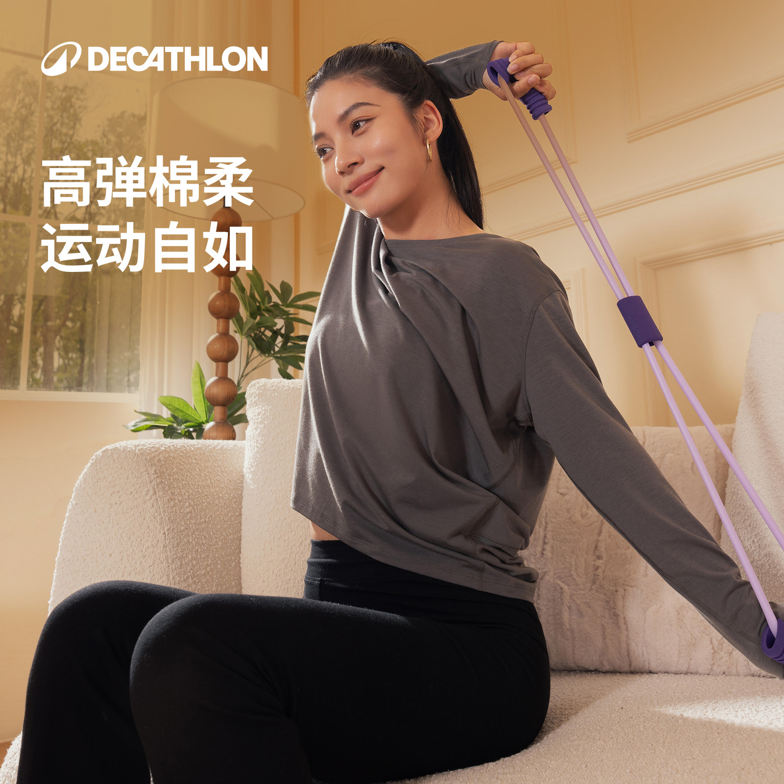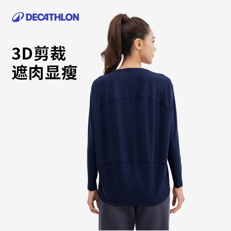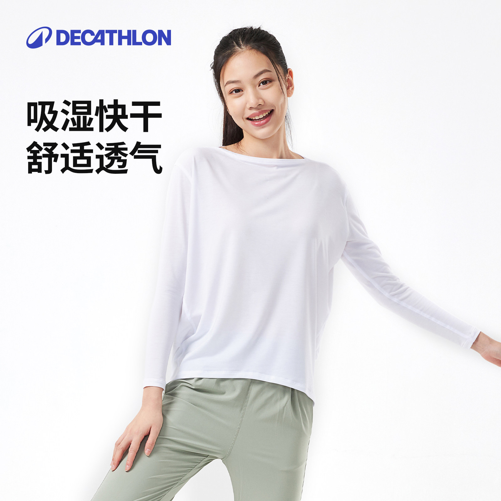 迪卡侬运动瑜伽服女春秋长袖跑步T恤速干宽松健身服保暖上衣SAT4
