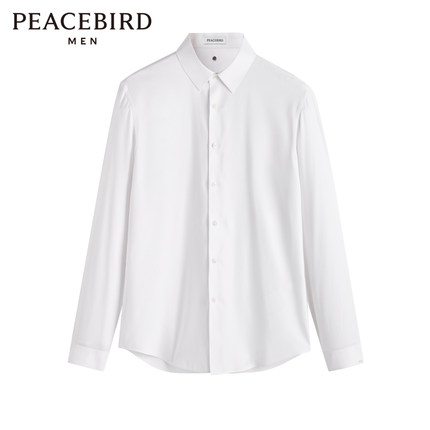 太平鸟男装 休闲衬衫纯色修身商务斯文青年免烫打底白色衬衣男