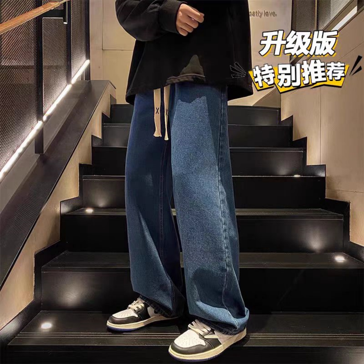 水洗牛仔裤男款直筒宽松大码长裤