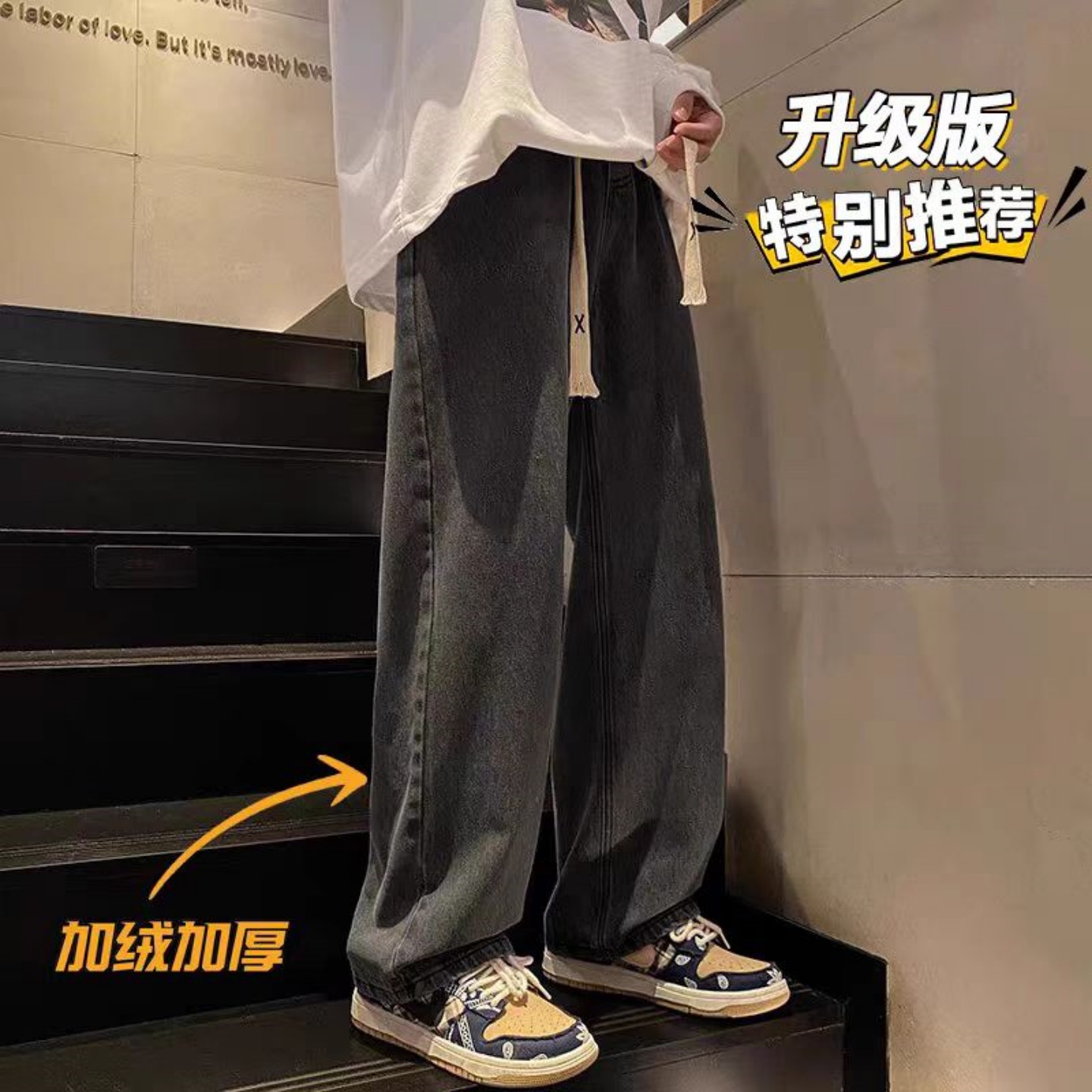 水洗牛仔裤男款秋冬季直筒宽松大码阔腿裤美式潮牌休闲长裤子男生