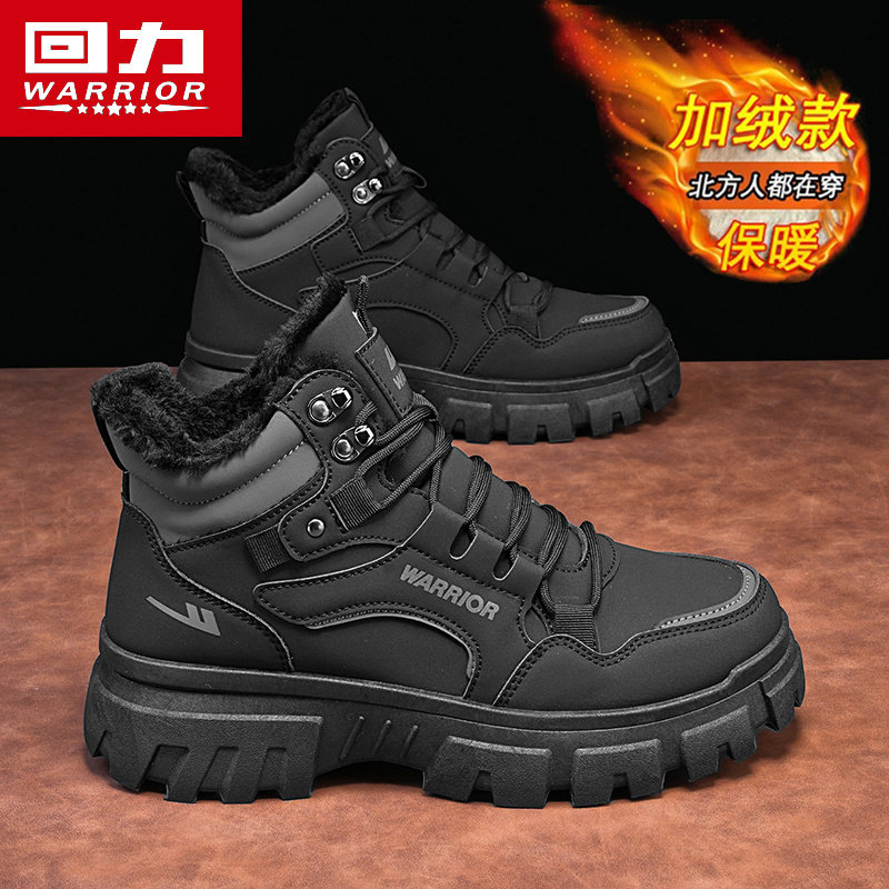 回力高帮棉男鞋冬季新款防滑加绒加厚保暖棉鞋工装马丁靴男士冬鞋