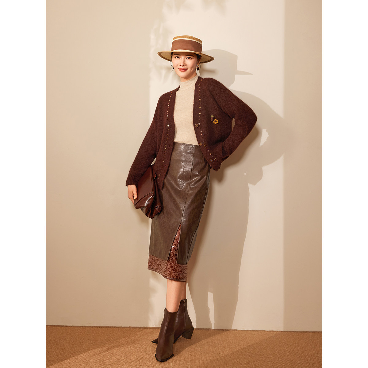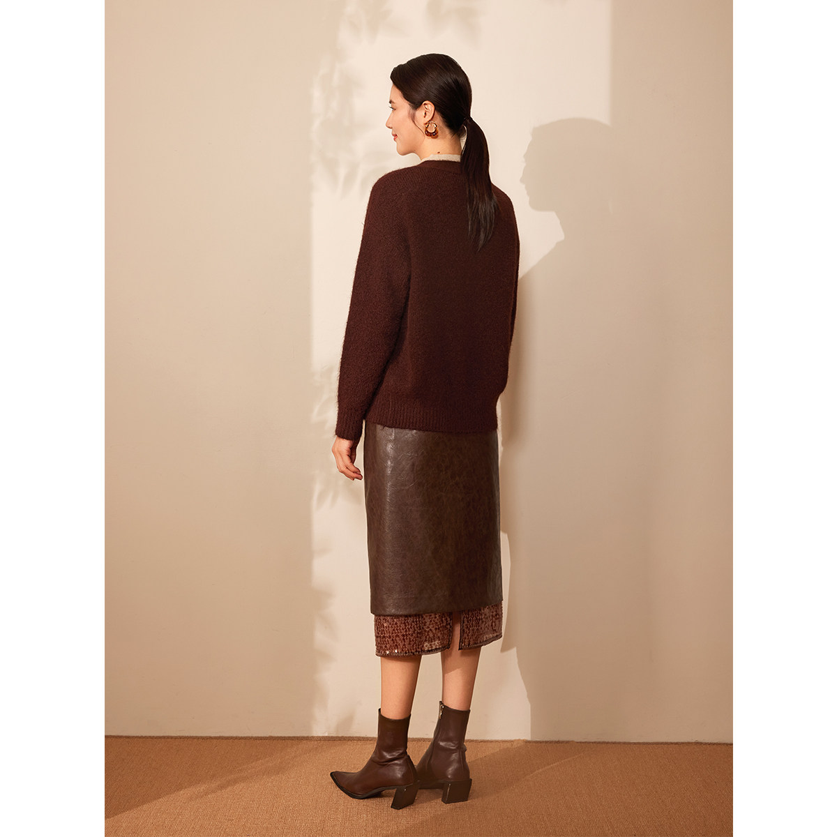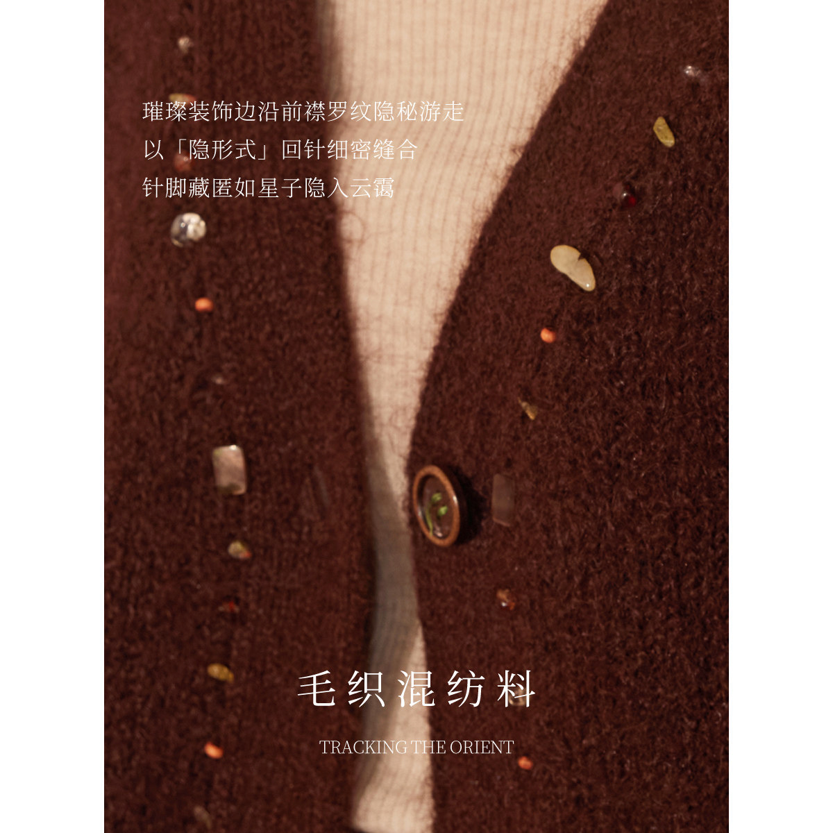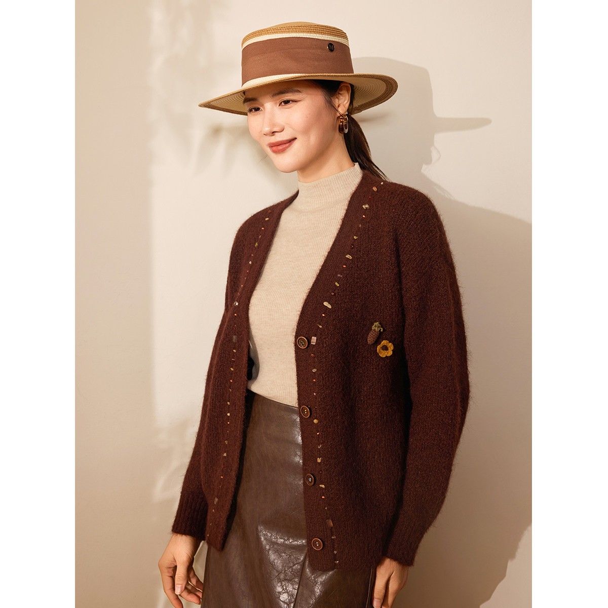 【趣味装饰】BBLLUUEE/粉蓝衣橱2025冬新款简约V领复古毛衫女外套