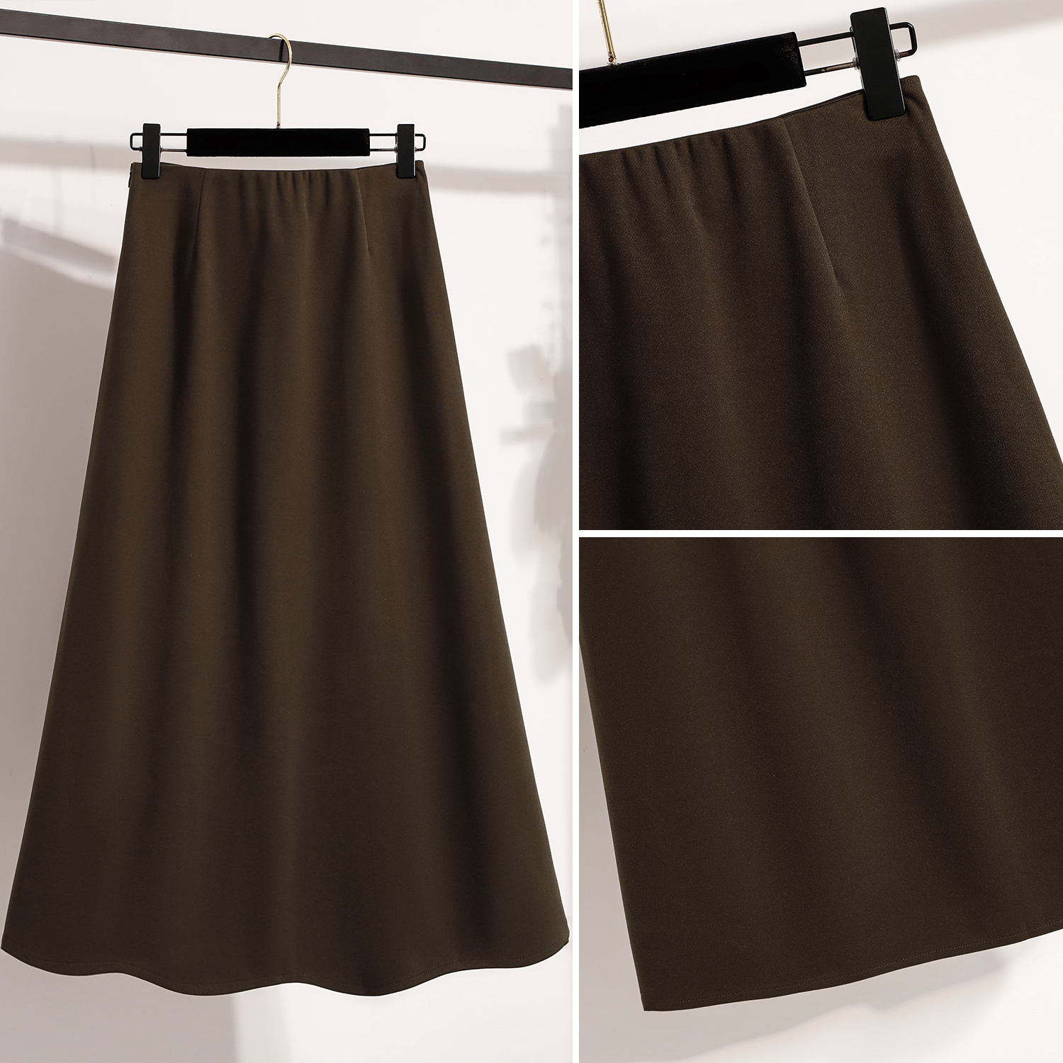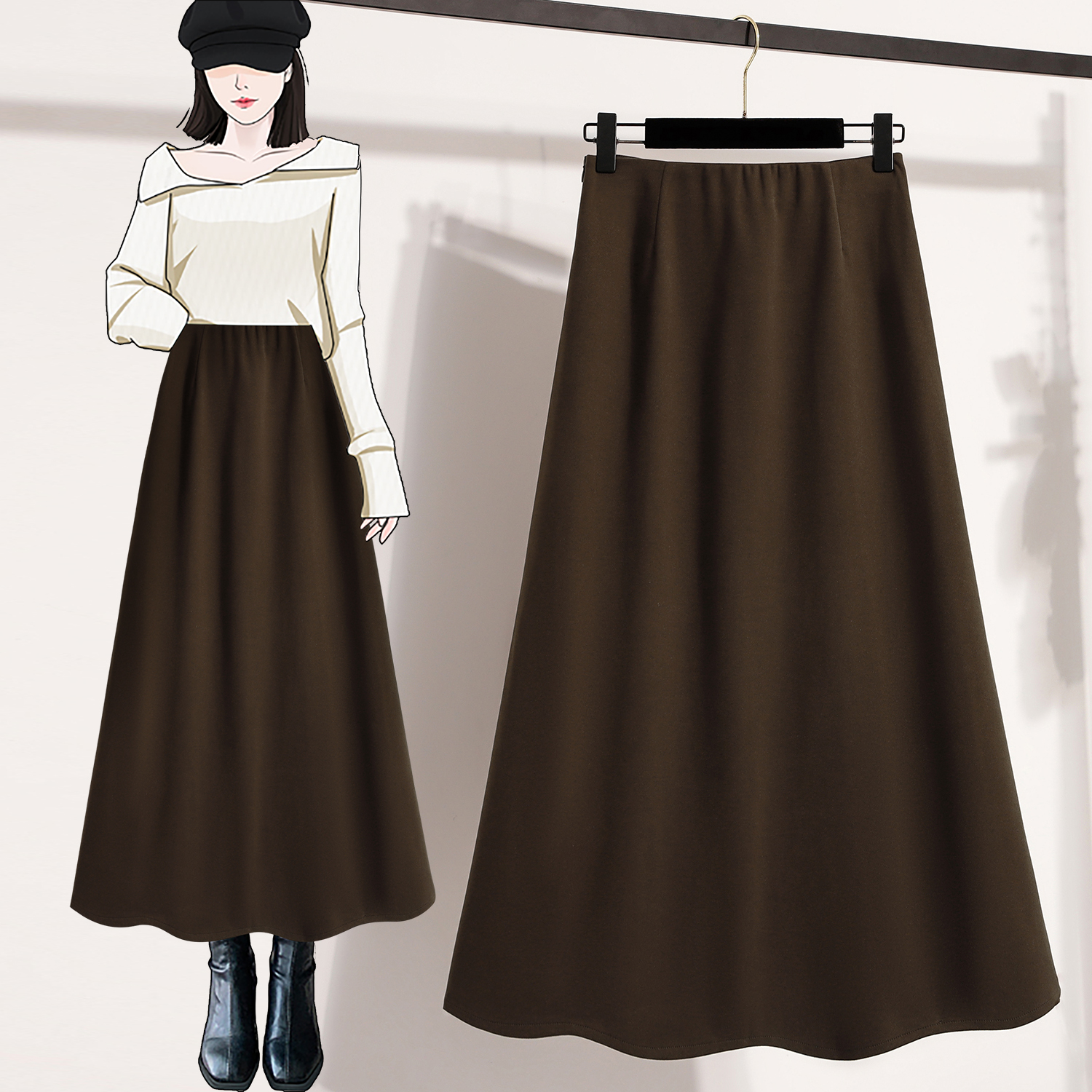 2025秋季新款纯色毛呢半身裙女加大码松紧腰设计感气质百搭A字裙