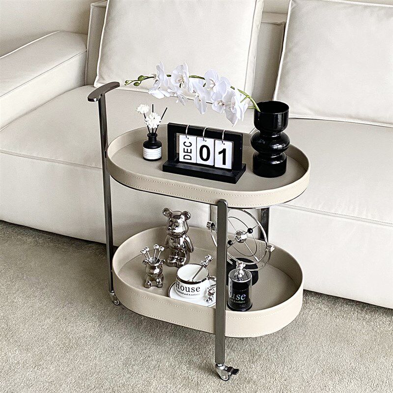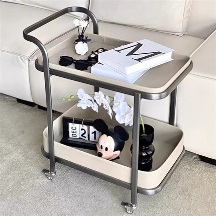 轻奢马鞍皮移动沙发边几小推车茶几客厅家用角几床头柜带轮置物架