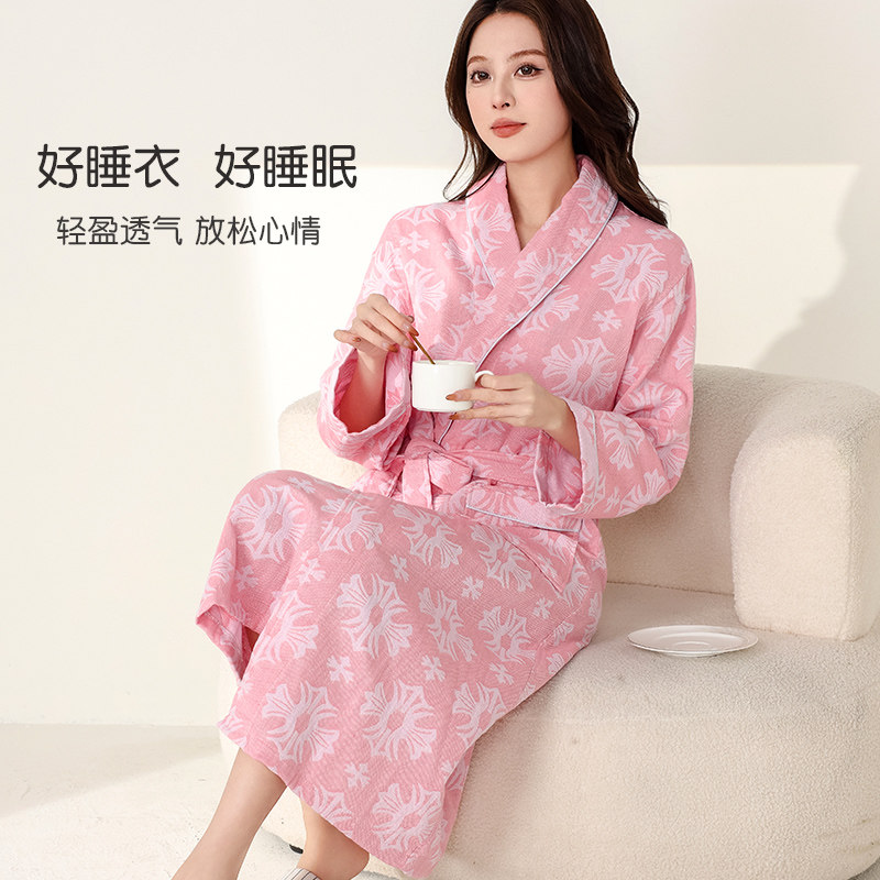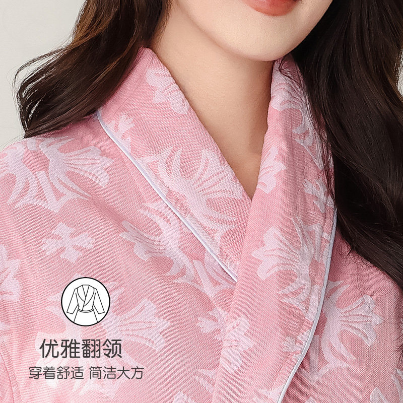 女浴袍春夏薄款睡衣纯棉浴衣双层纱布睡袍吸水速干四季通用家居服