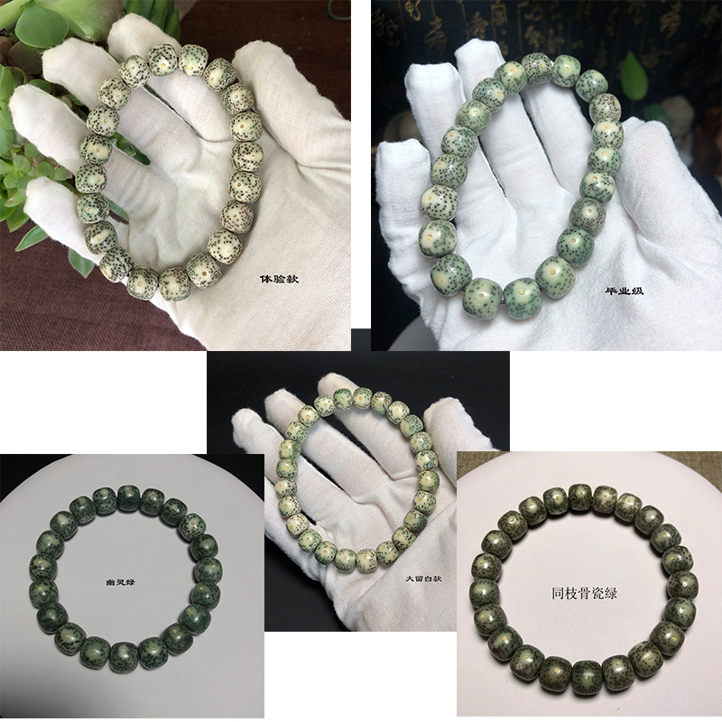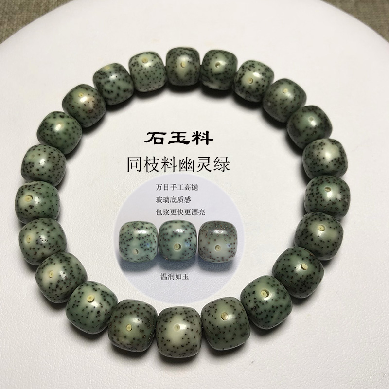 原生态石玉料星月菩提海南毛敢料绿幽灵骨瓷文玩灵玉配饰单圈手串