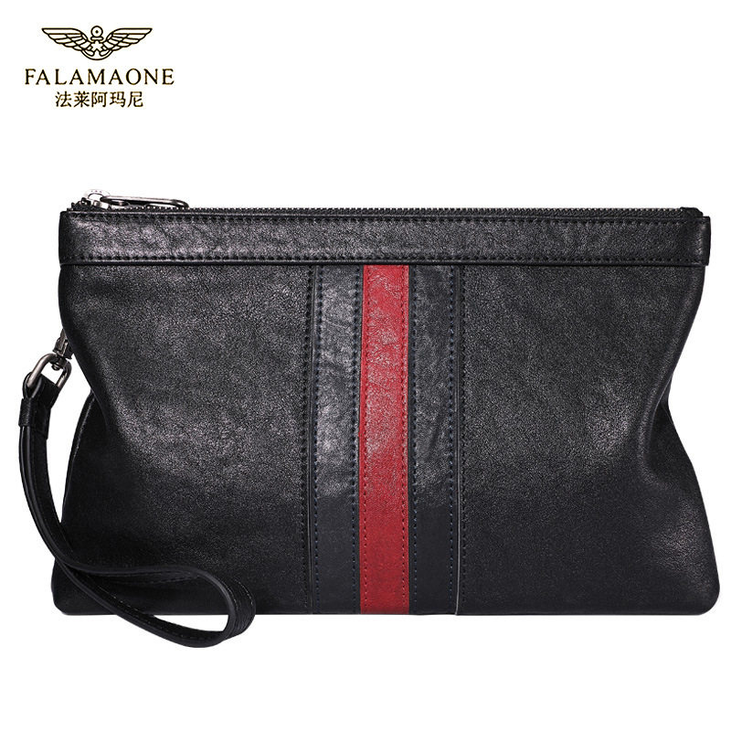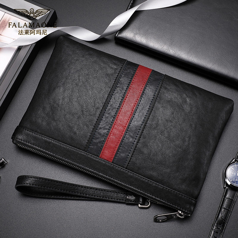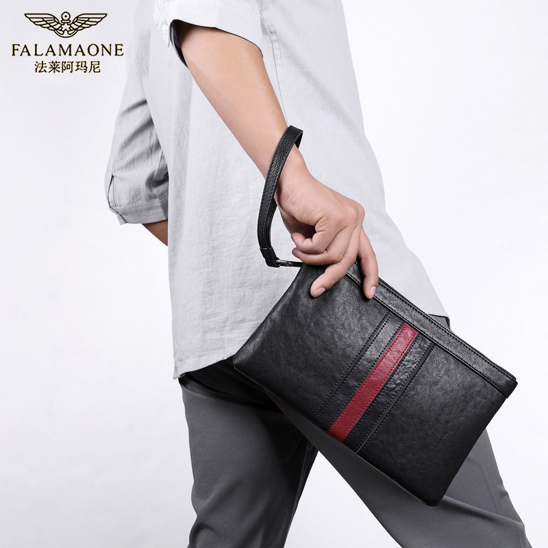 仅亏一天牛皮法莱阿玛尼轻奢男士手包百搭夹包商务休闲男包腋下包