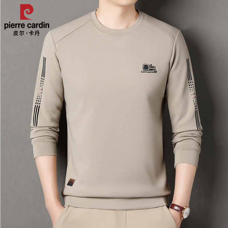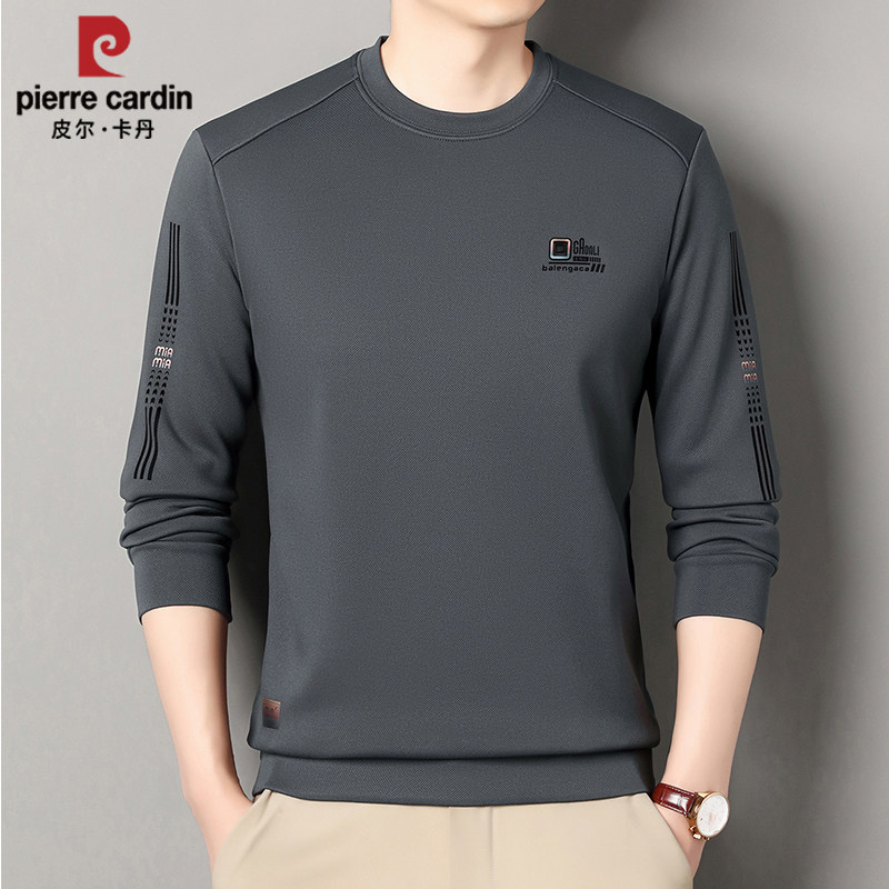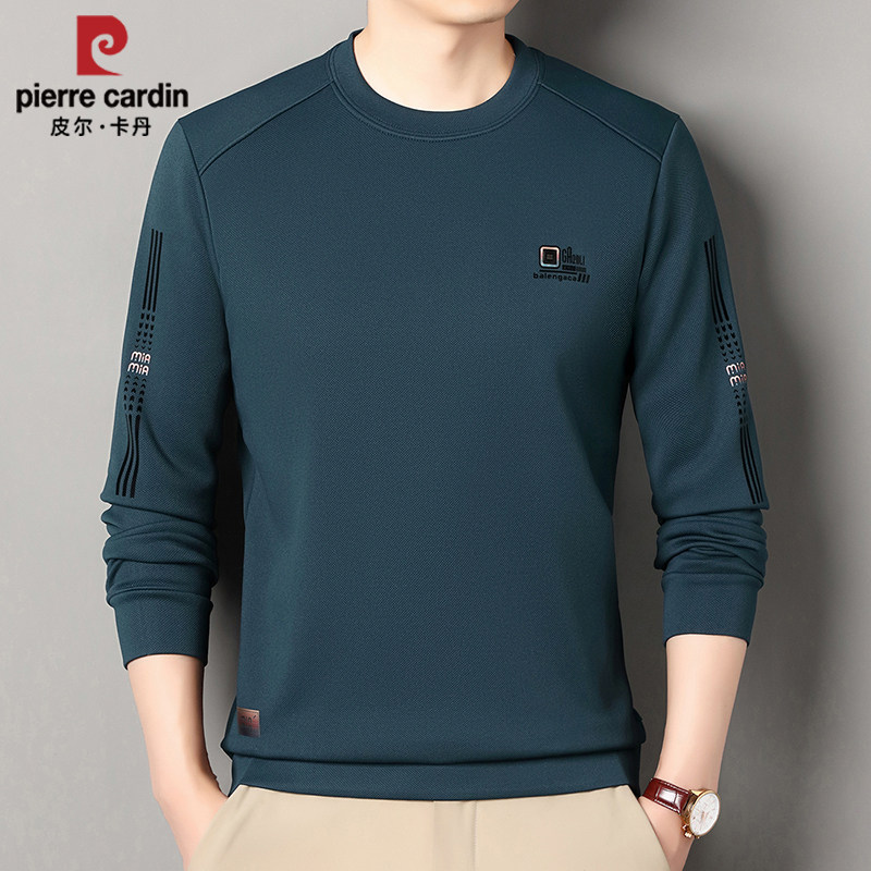 皮尔卡丹男士长袖t恤加绒红色本命年卫衣秋冬装上衣保暖打底小衫T
