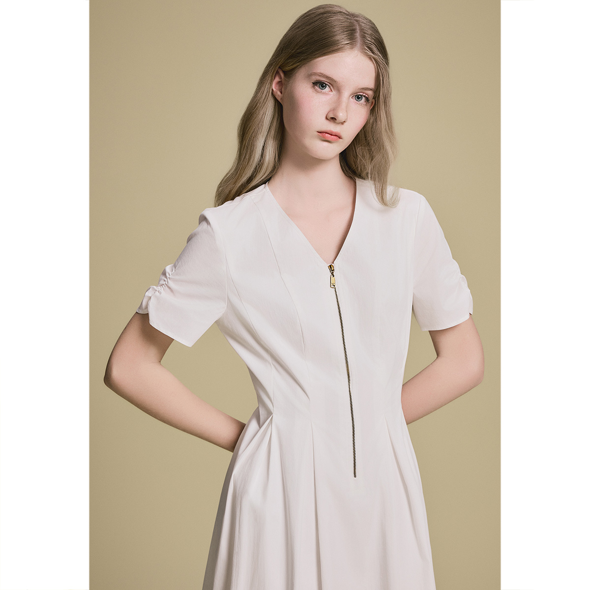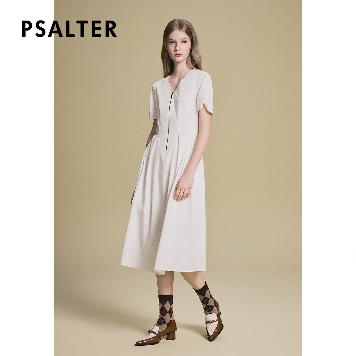 诗篇专选休闲简约收腰显瘦白色长裙气质连衣裙2025夏季新款
