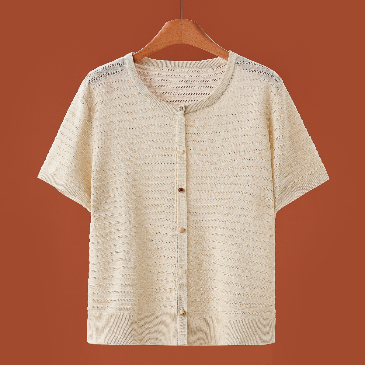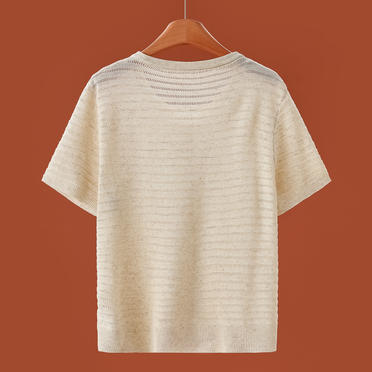 专柜399 31%莱赛尔【兰】 含亚麻圆领套头镂空天丝针织衫490~秋季