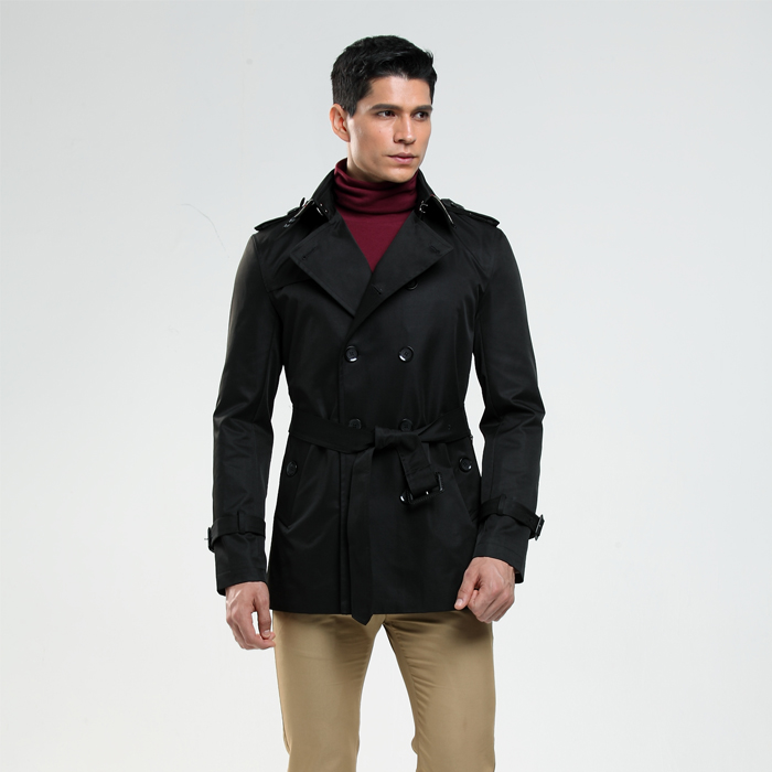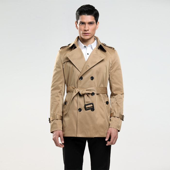 秋冬新款英伦双排扣风衣男短款男士风衣修身商务休闲外套