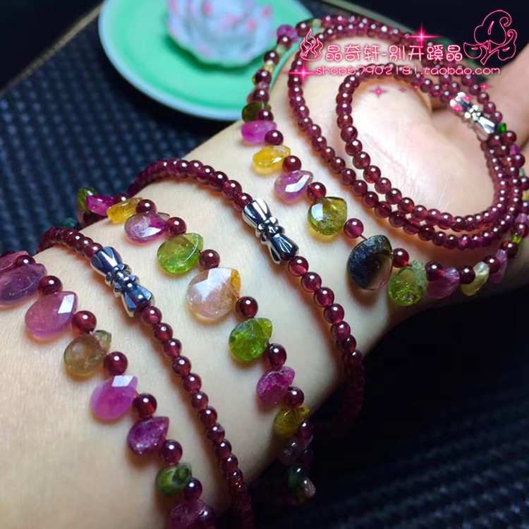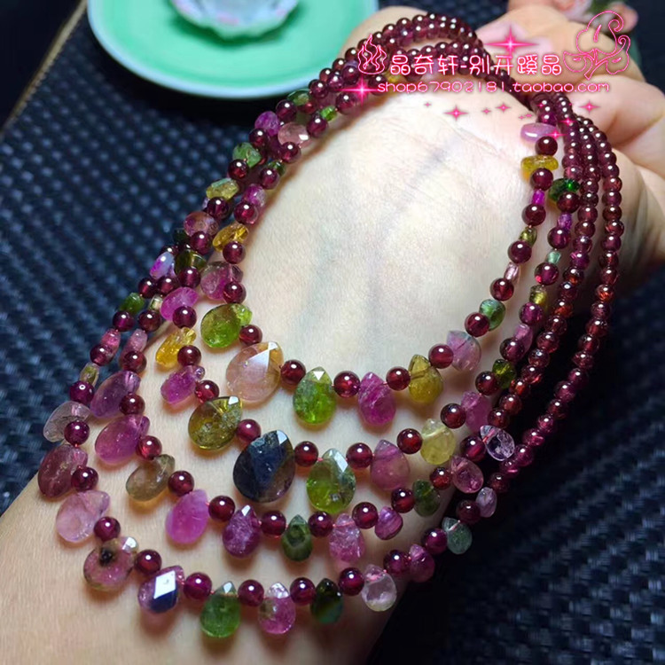 天然石榴石碧玺水滴公主链 天然水晶女款锁骨链