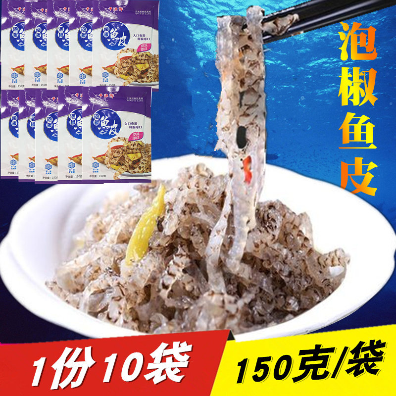 千渔郎泡椒鱼皮即食脆鱼皮海鲜酒店凉拌菜香辣鱼皮丝零食小吃150g
