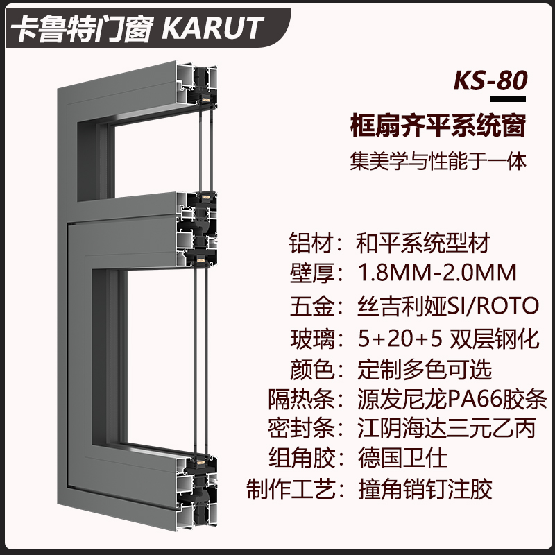 北京和平80框扇齐平系统窗高保温静音窗断桥铝封阳台落地平开窗户