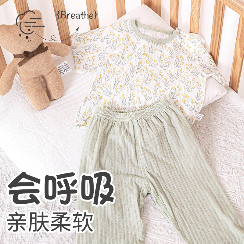 婴儿夏天衣服宝宝夏季套装短袖七分裤纯棉薄款新生分体男女童夏装